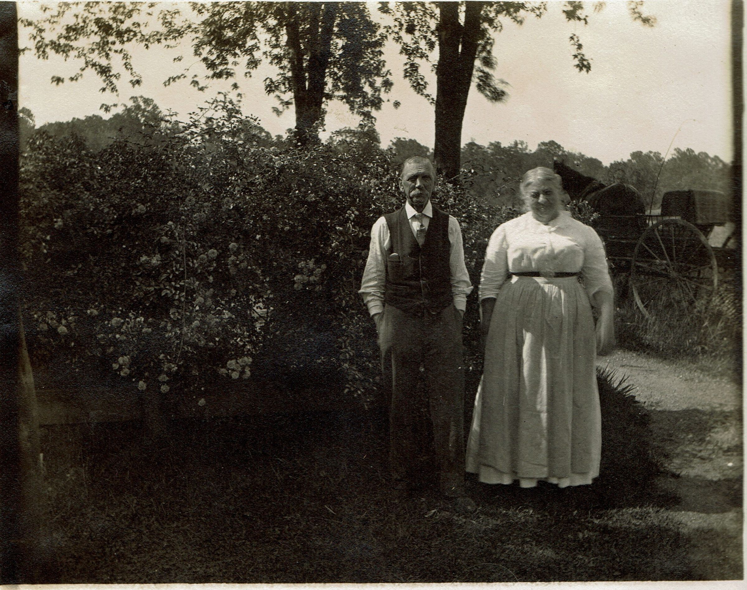 Marshall-Schmidt Album: Elderly Man and Woman Standing Near Horse-Drawn CarriageEntry/Object ID