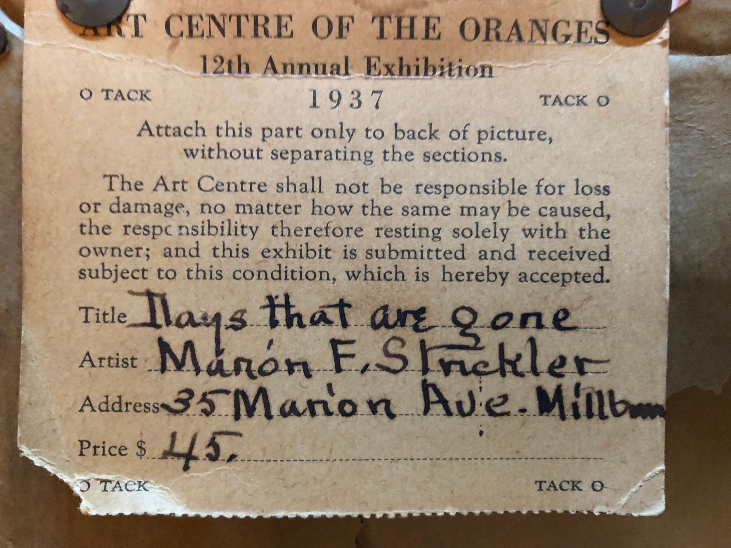 Marion F. Stricker, "Days That Are Gone," submitted to the Art Centre of the Oranges 13th Annual Exhibition, 1937. Framed oil on canvas painting.