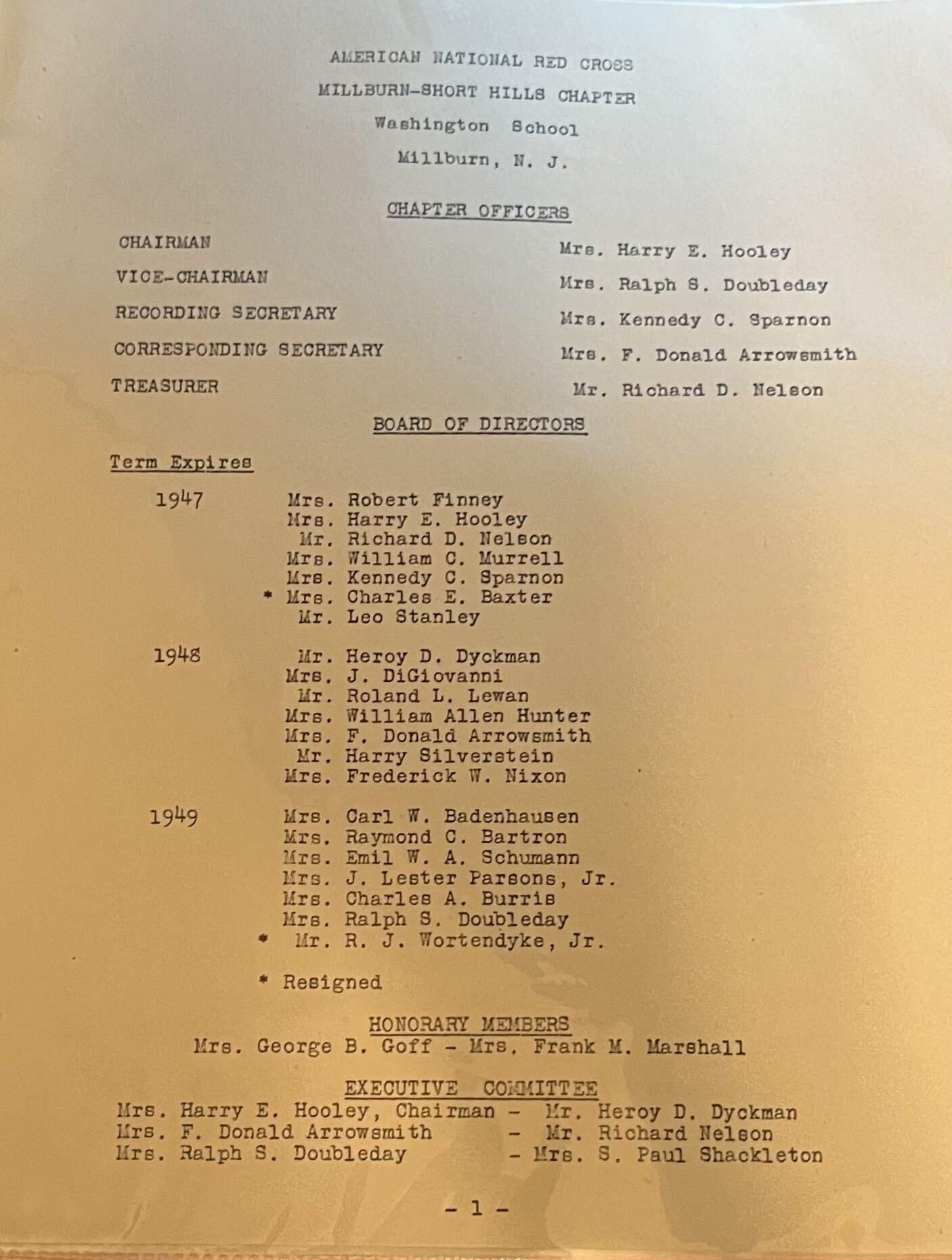 American National Red Cross Member List Millburn Short Hills. Published in the 1940s, 16 pages.Collection