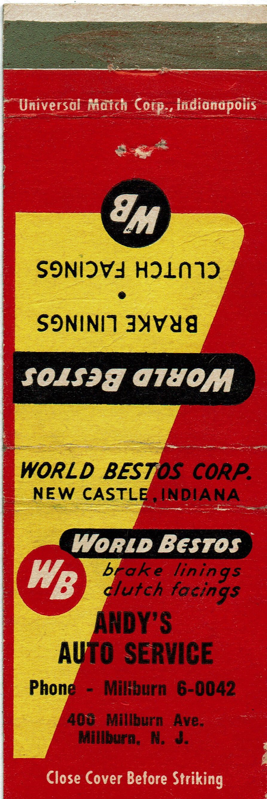 Matchbook Cover for Andy's Auto Service, 400 Millburn Avenue, Millburn, NJ.Acquisition