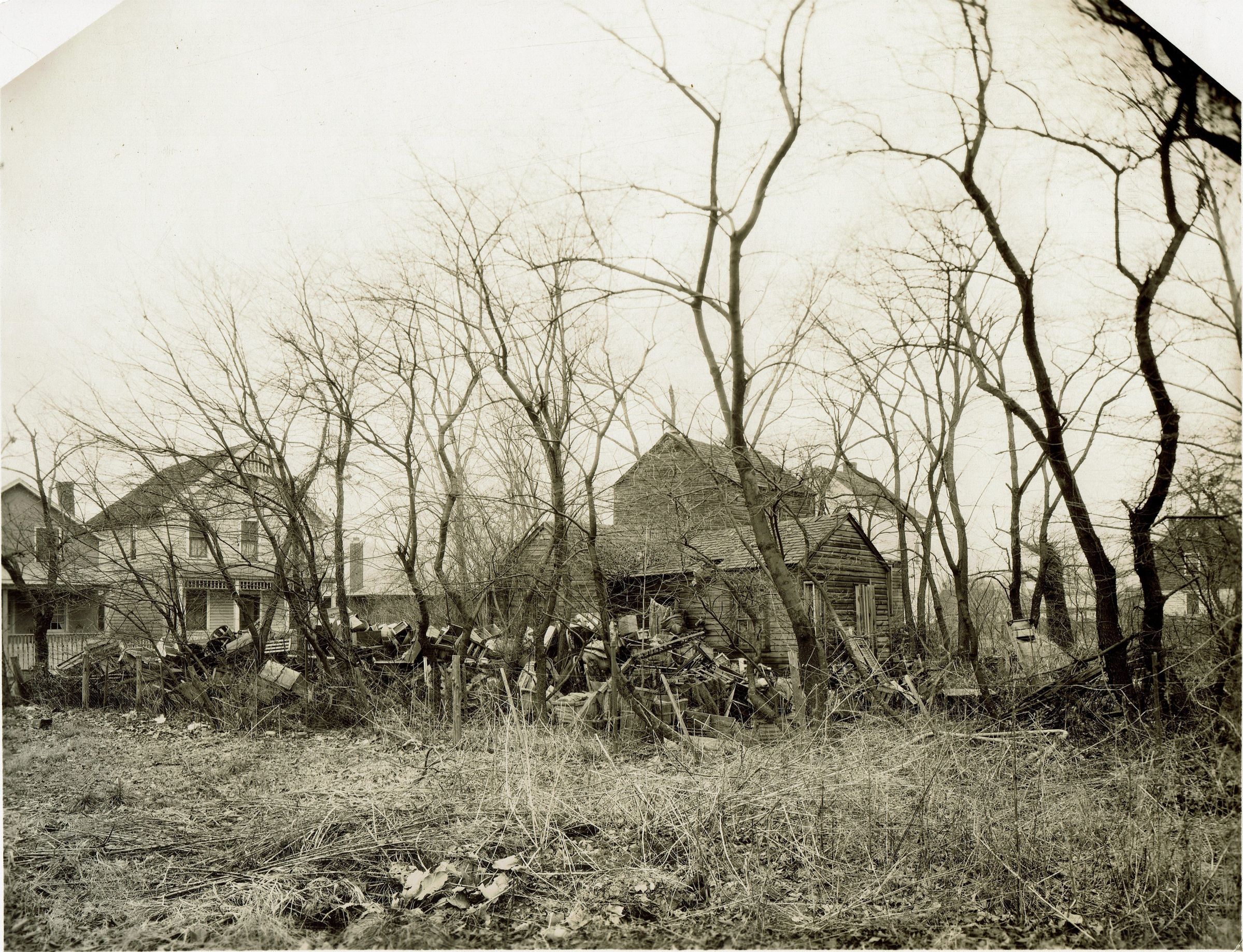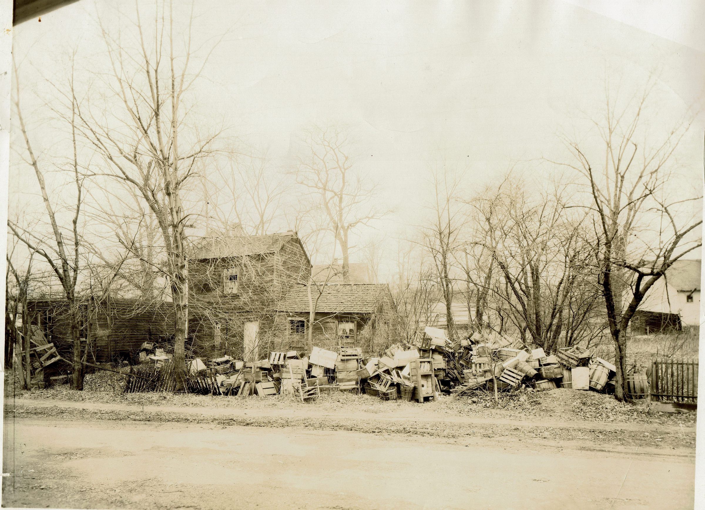 Annie McMonigall, c. 1858-1941 was a well-known figure in Millburn for surrounding her home on Essex Street, behind town hall, with old crates and boxes. She attracted attention from the press by strongly objecting to the periodic clean up efforts of the Millburn Police and Fire Departments.