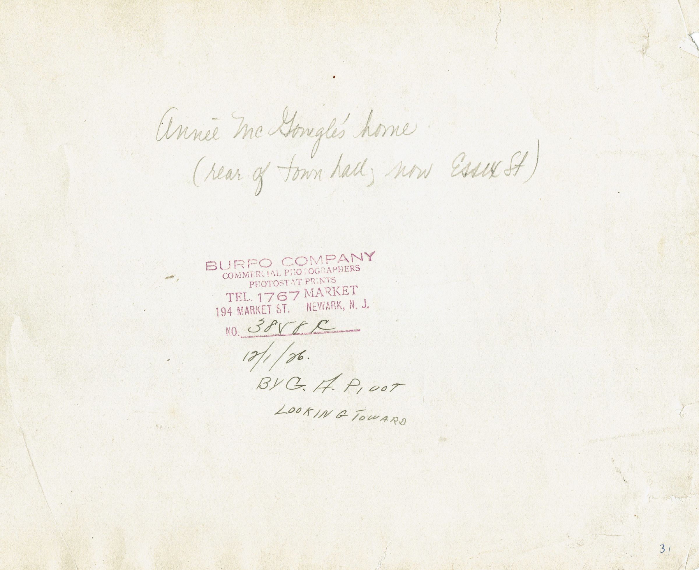 Annie McMonigall's House, 23 Essex Street, 1926Description