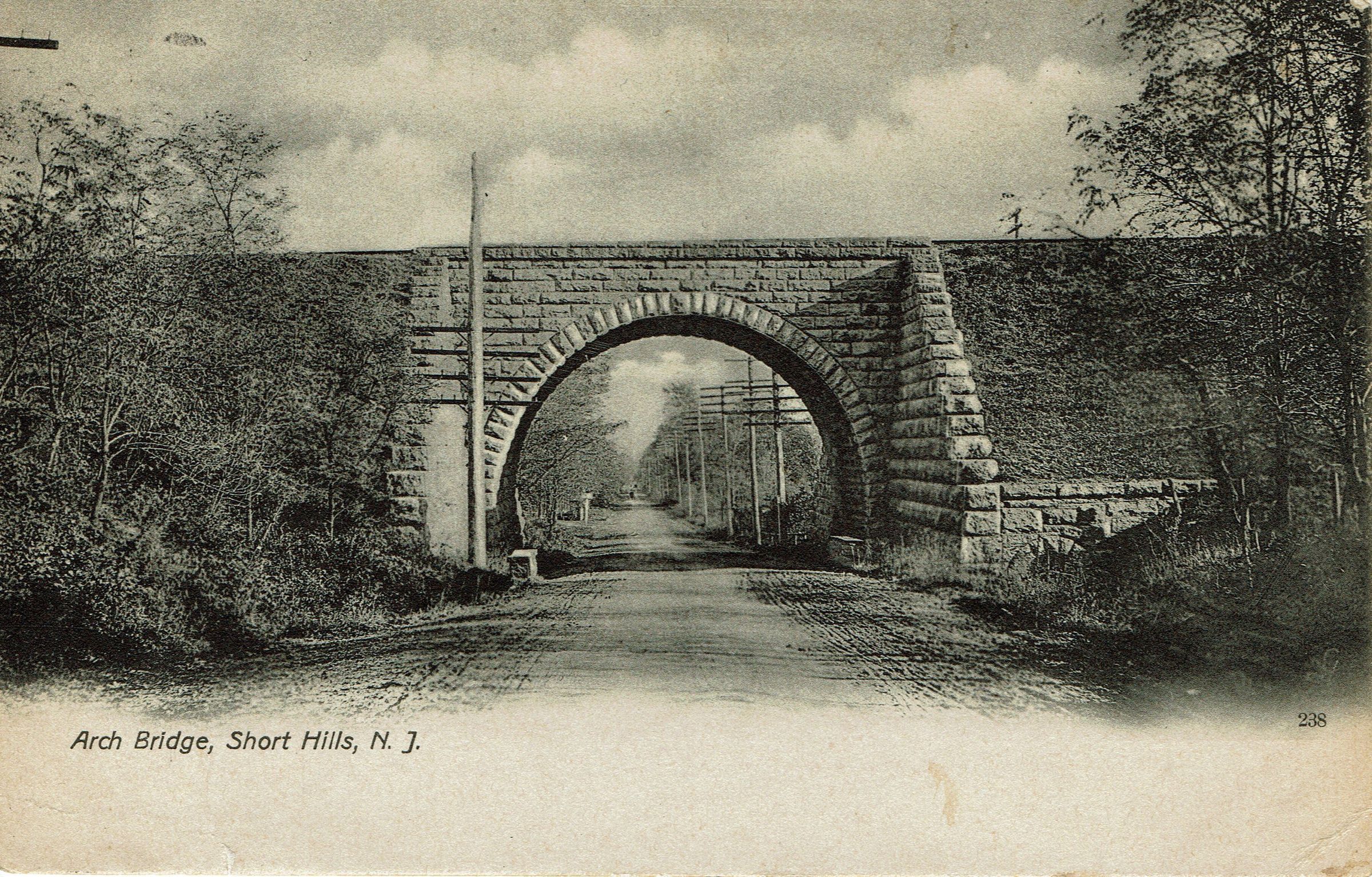Postally used, photographic postcard of the Arch Bridge on Morris Turnpike in Short Hills. Postmarked Millburn, January 5, 1909. Card is addressed to Mrs. John F. Gentzel, 98 North Seventh Street, Roseville, NJ.Collection