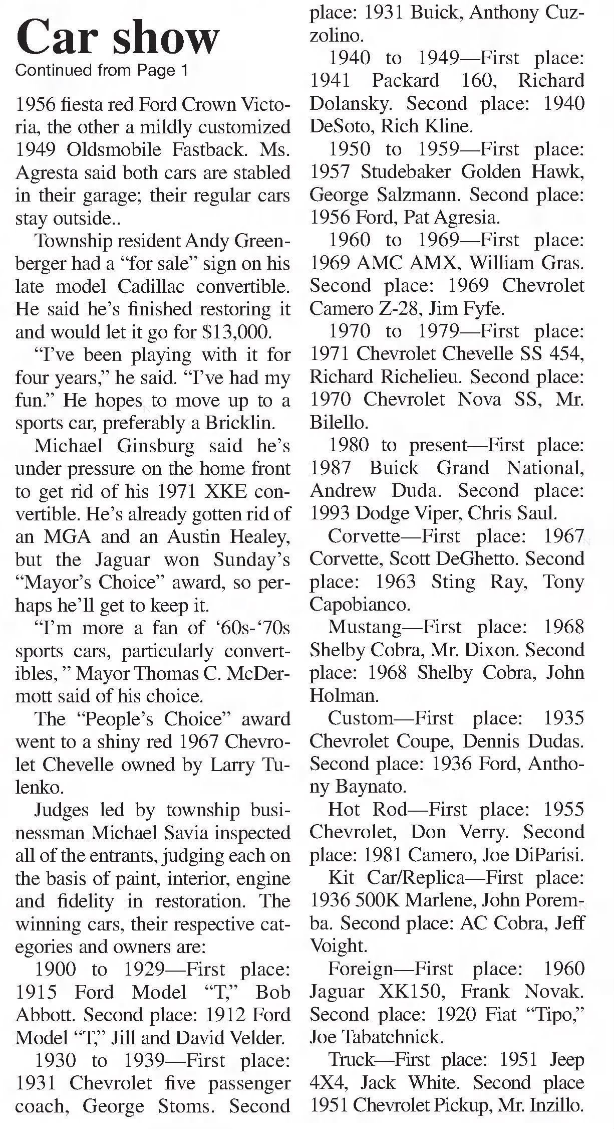 Automobile: Best in Show Trophy Millburn Classic Car Show, 2002Entry/Object ID
