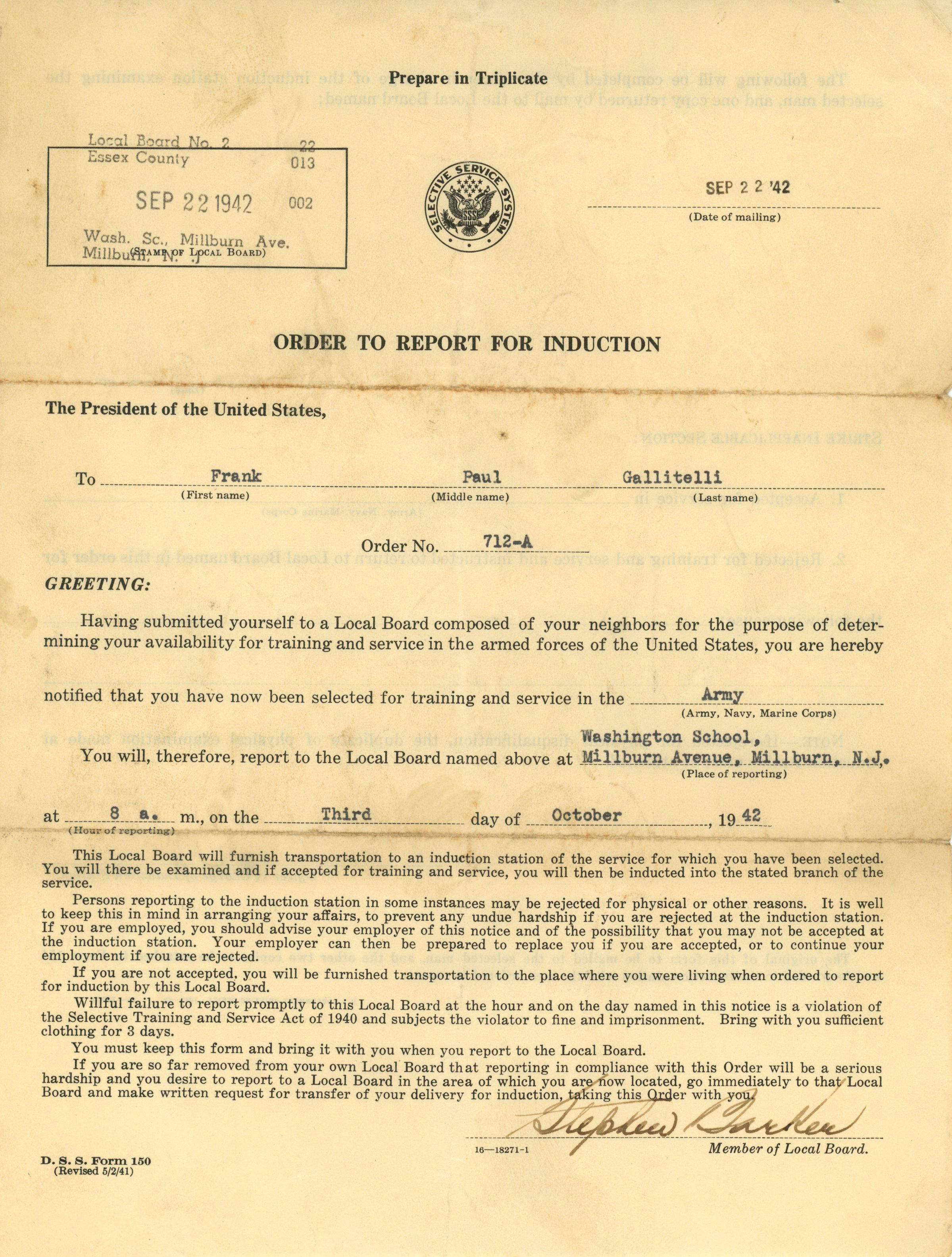 Gallitelli: Frank Gallitelli World War II PapersEntry/Object ID