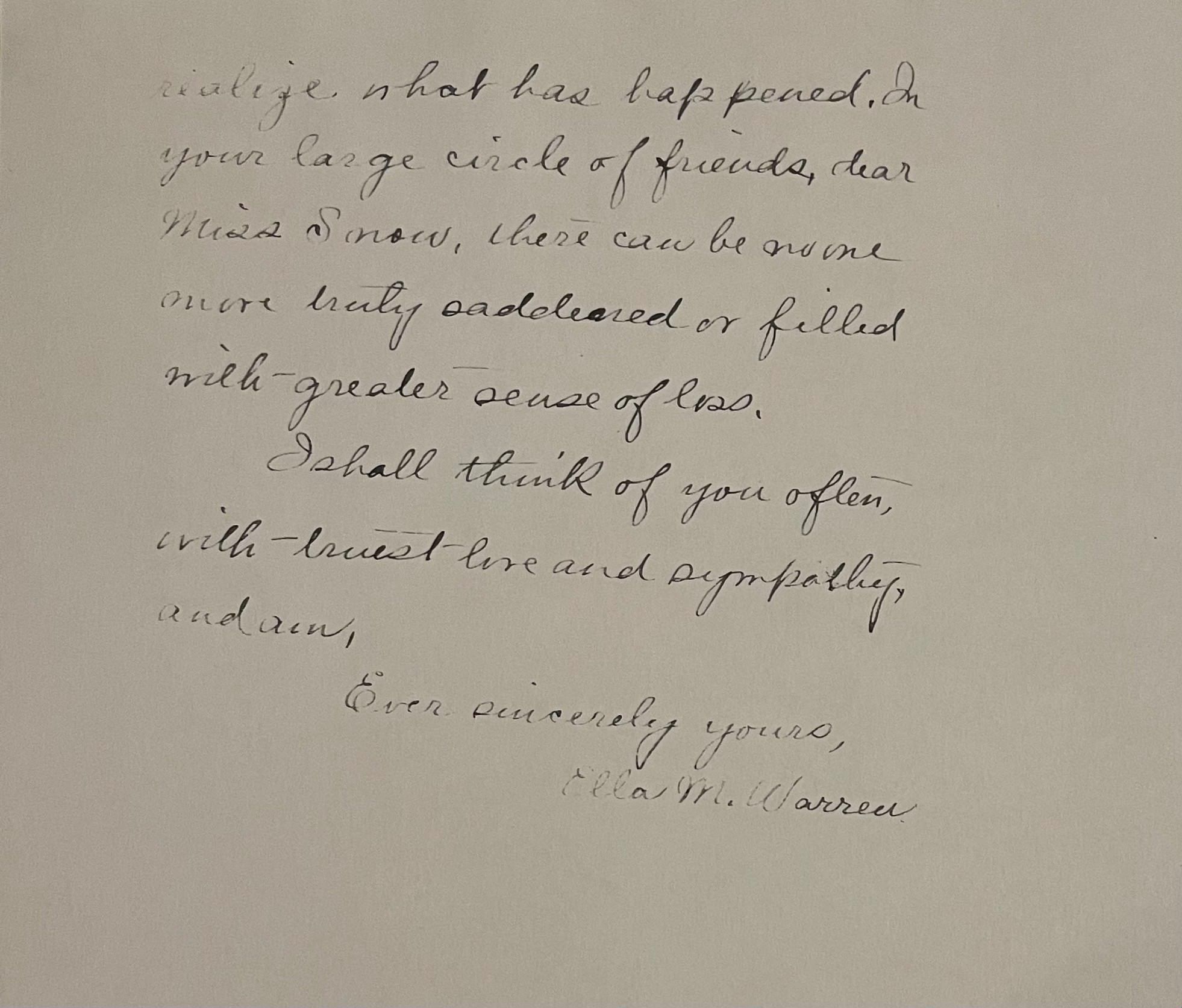 Fragment from aympathy letter addressed to Bonnie Snow from Ella Warren, c. 1911.Collection