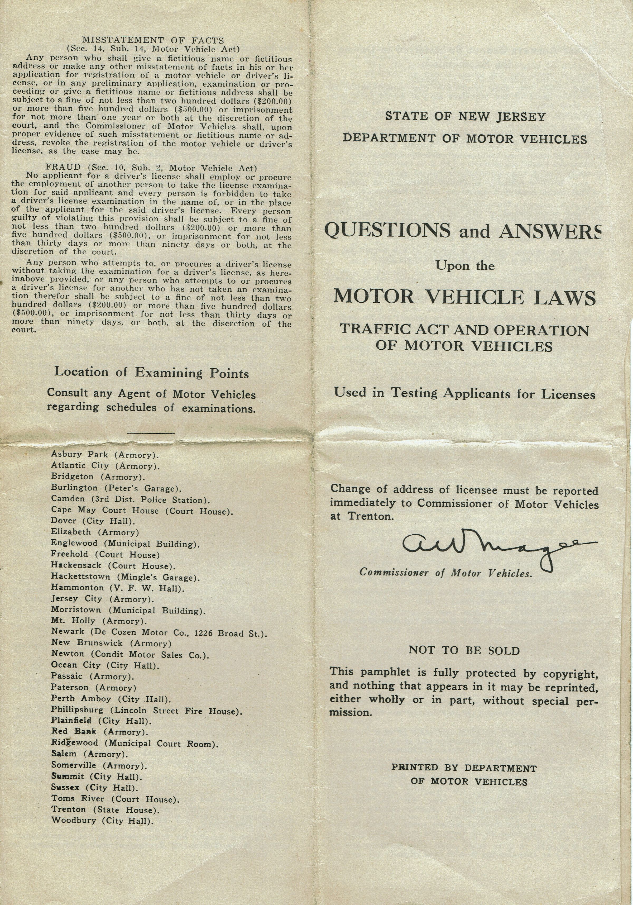Automobiles: Question and Answers Upon the NJ Motor Vehicle LawsEntry/Object ID