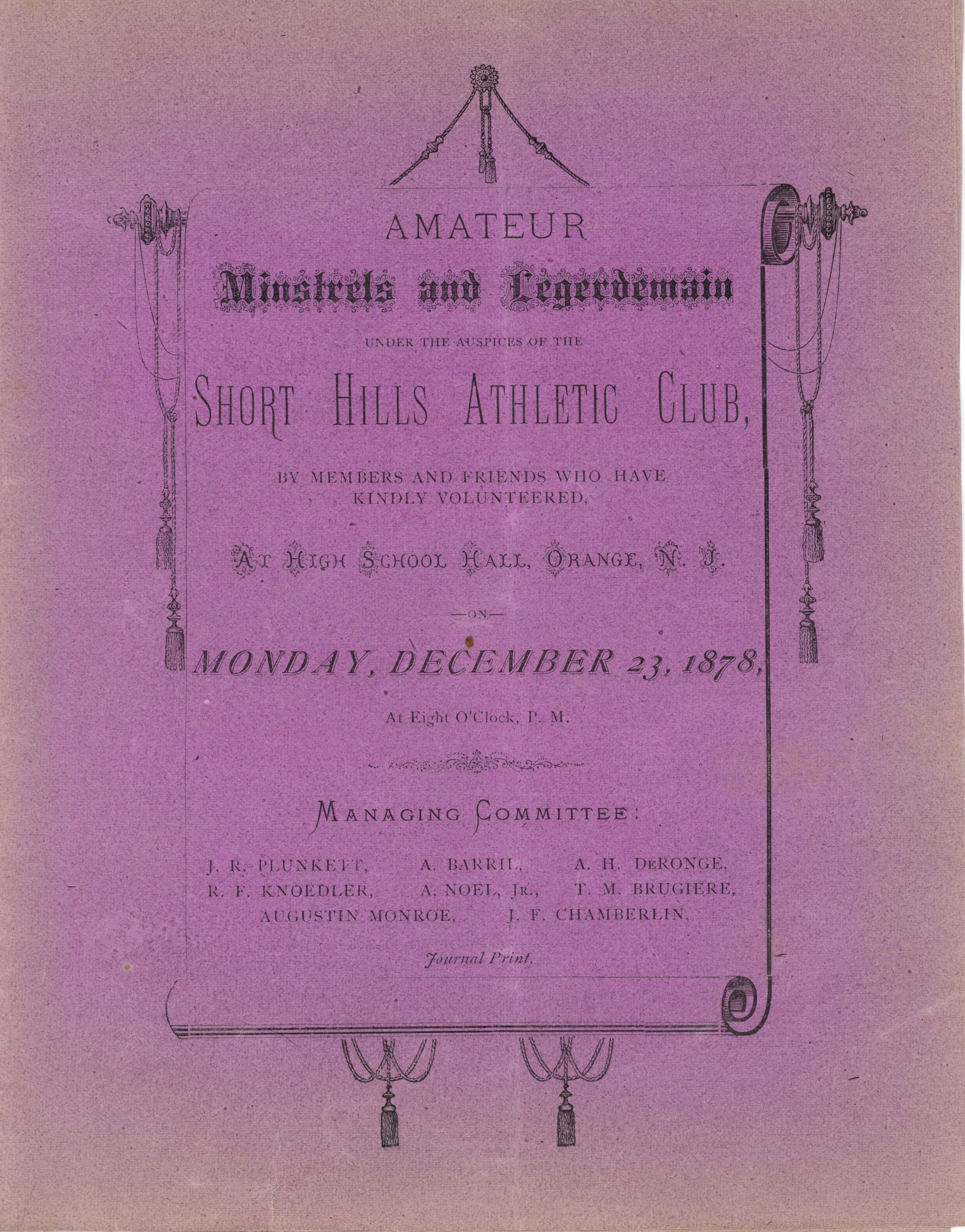 Short Hills Athletic Club: Amateur Minstrels and Legerdemain Program, 1878