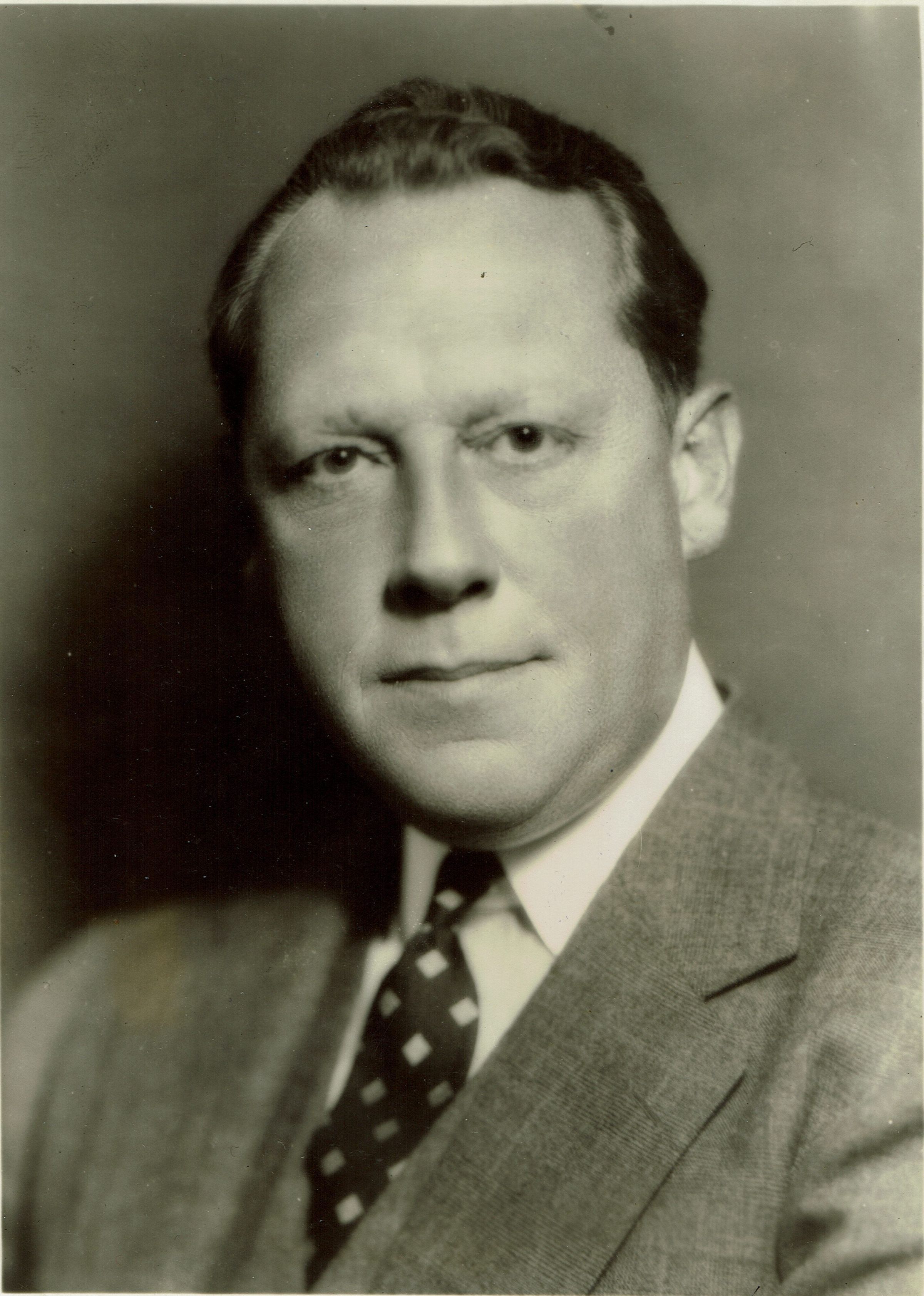 Photograph of Carl W. Badenhusen taken by Acme Newspictures Wednesday, October 4, 1939. Photo caption on verso reads: "Carl W. Badenahusen, President, P. Ballantine and Sons, Newark, N.J., who was elected Chairman of the United Brewers Industrial Foundation today (Wednesday, October 4) at the Foundation's Third Annual Convention at the Waldorf-Astoria Hotel in New York City. The Foundation was organized three years ago to align the brewing industry with the public interest.
