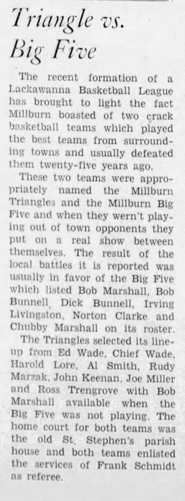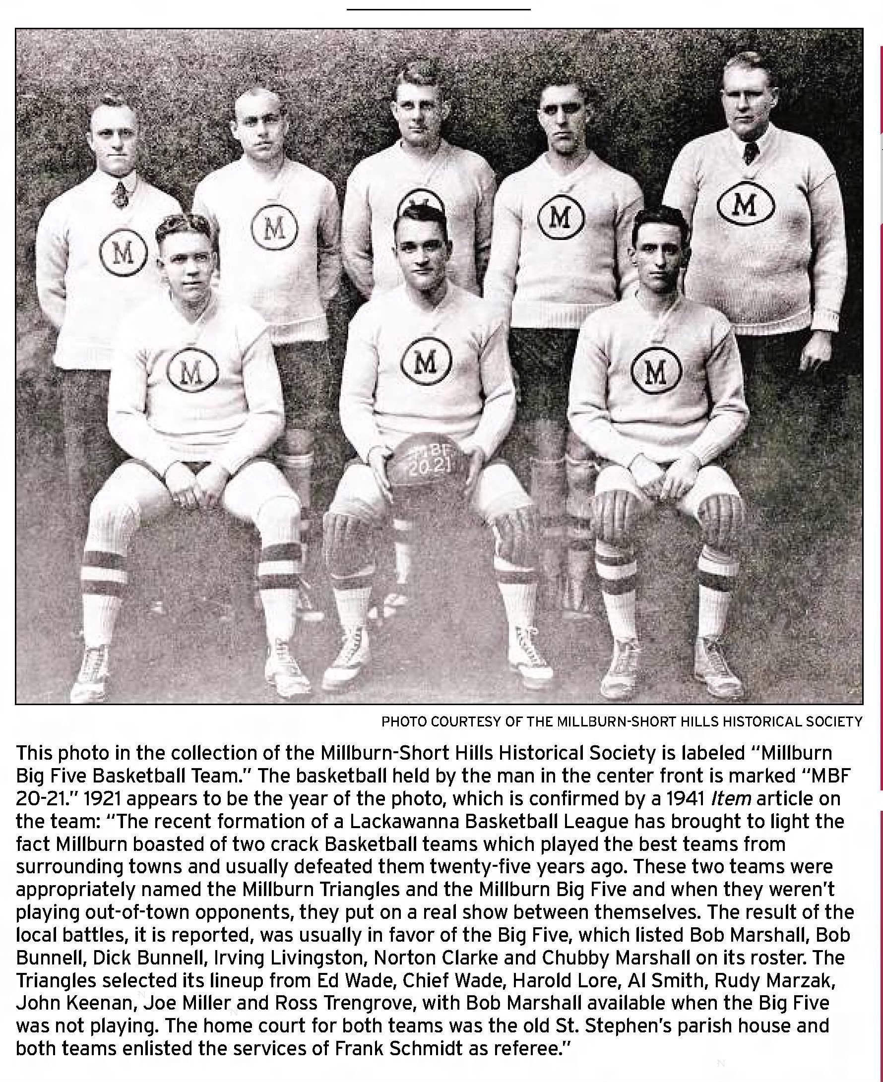 Basketball: Millburn Big Five Basketball Team, 1920-1921Entry/Object ID