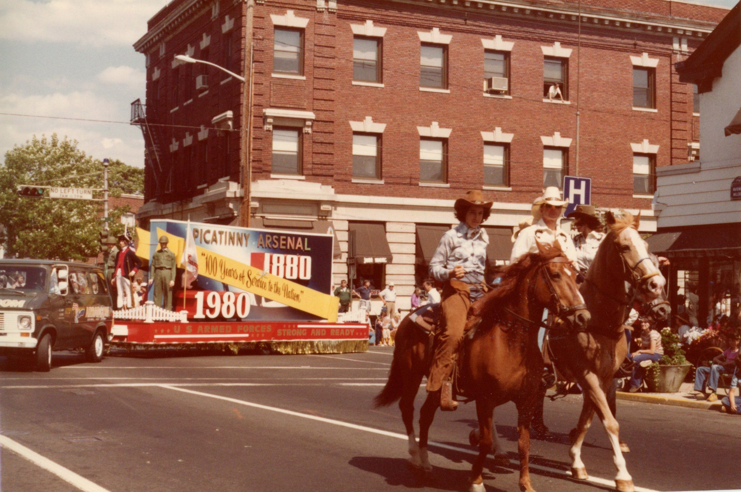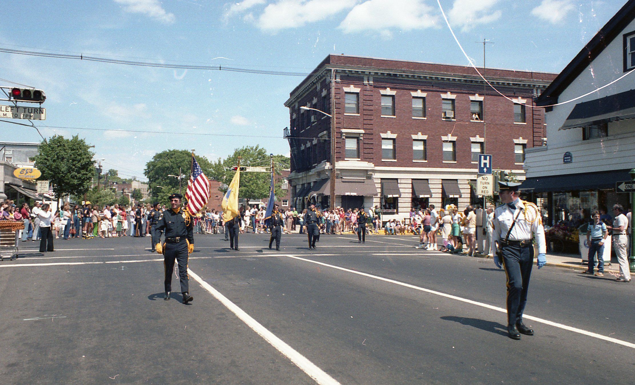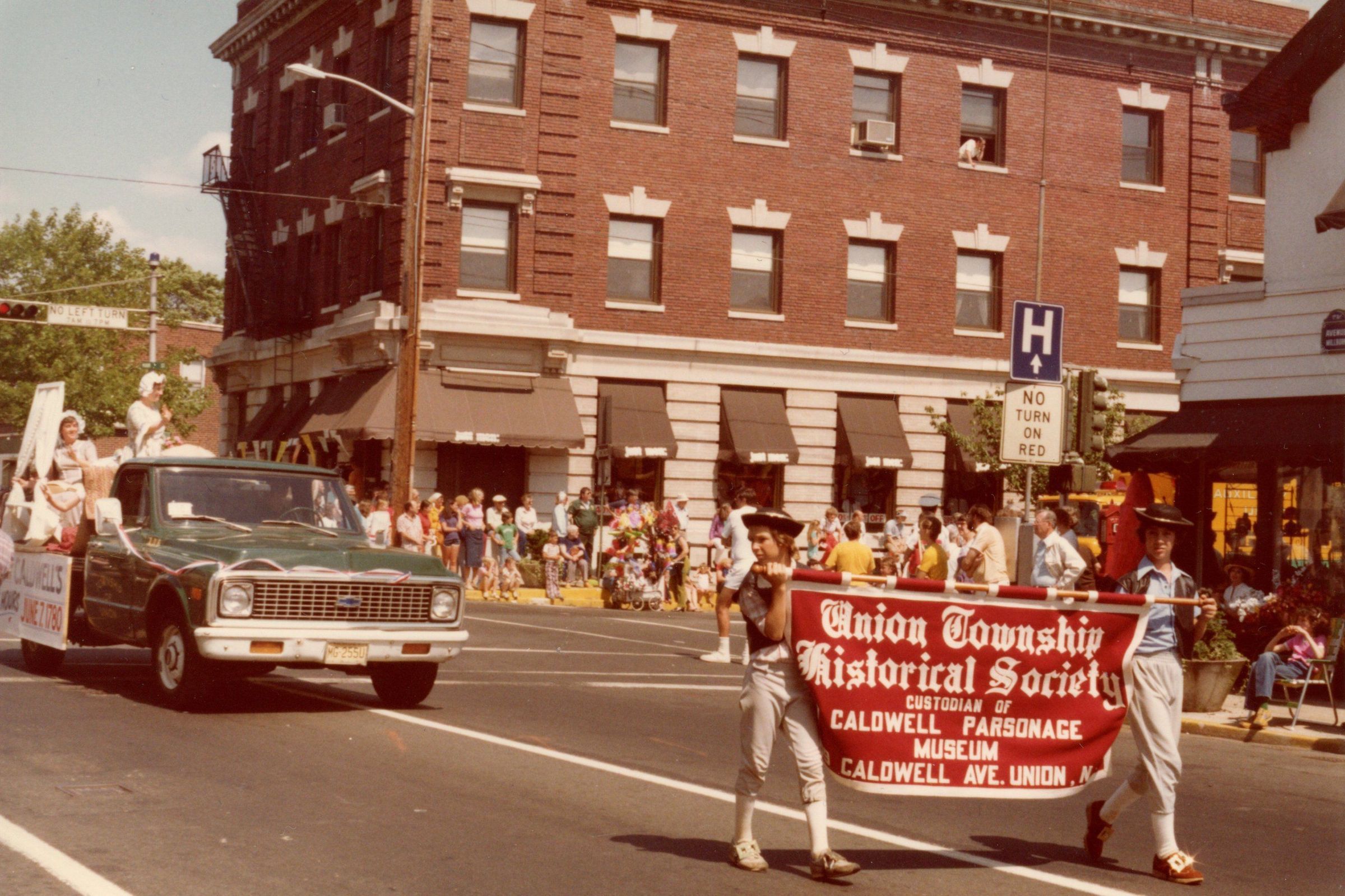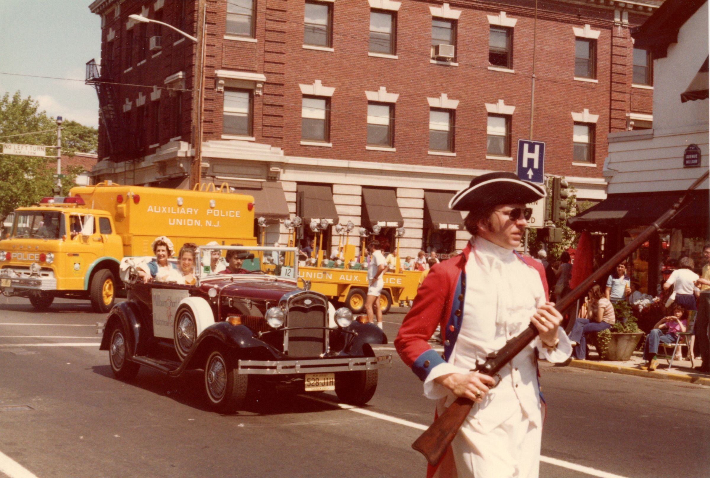 Photographs of civic organizations and military taken at the June 20, 1980 parade commemorating the Bicentennial of the Battle Of Springfield. The parade photos shows participants in period costume on Millburn Avenue near the intersection with Main Street.