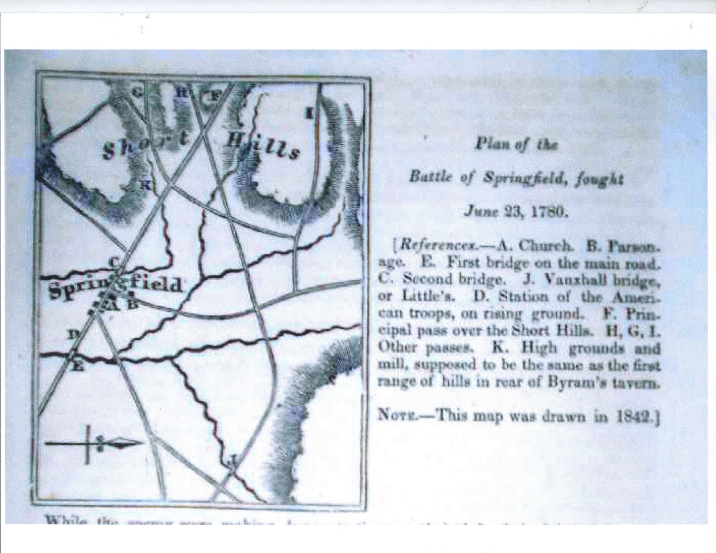 Plan of the Battle of Springfield drawn in 1842.