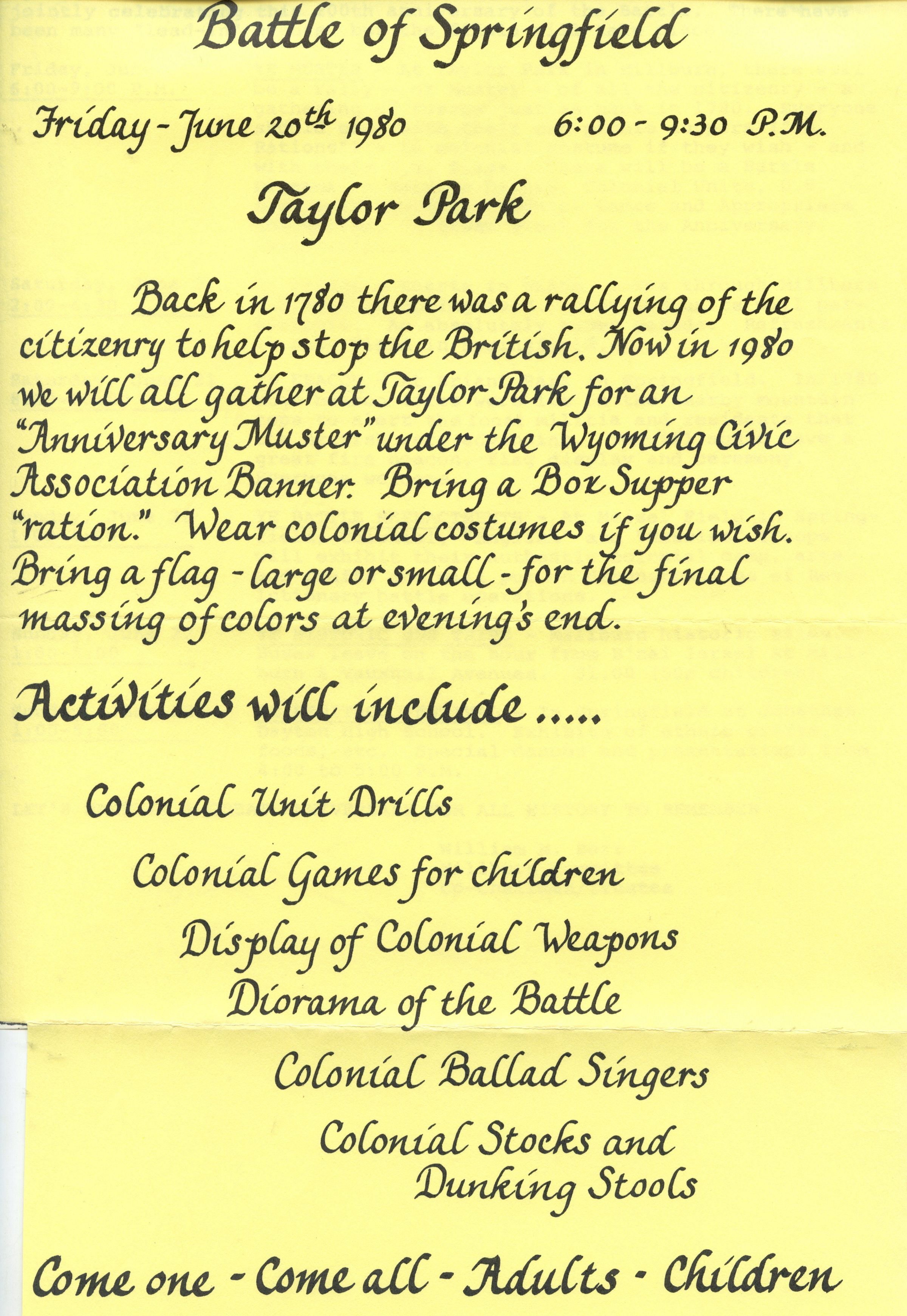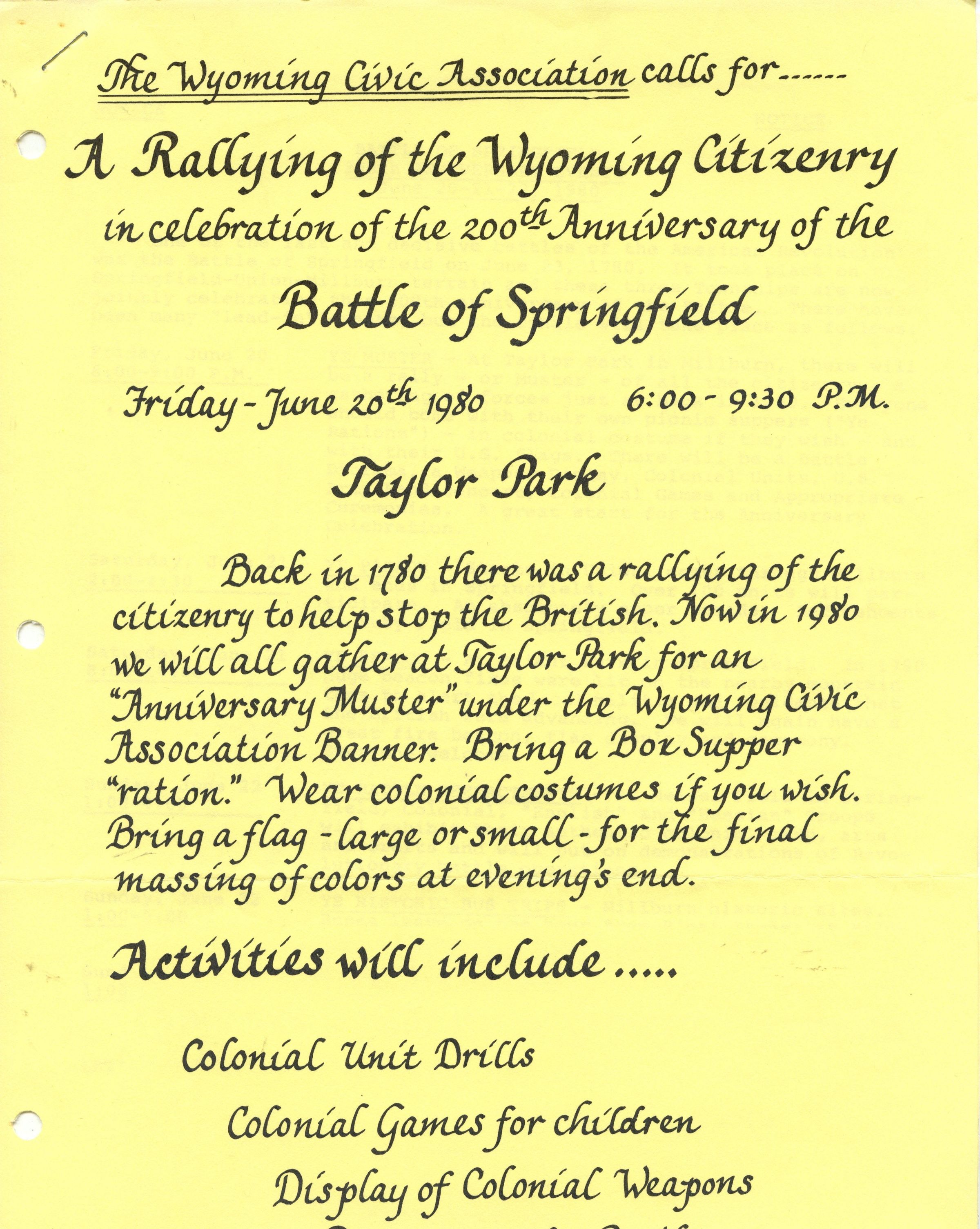 Battle of Springfield: Wyoming Citizenry Bicentennial Celebration, 1980