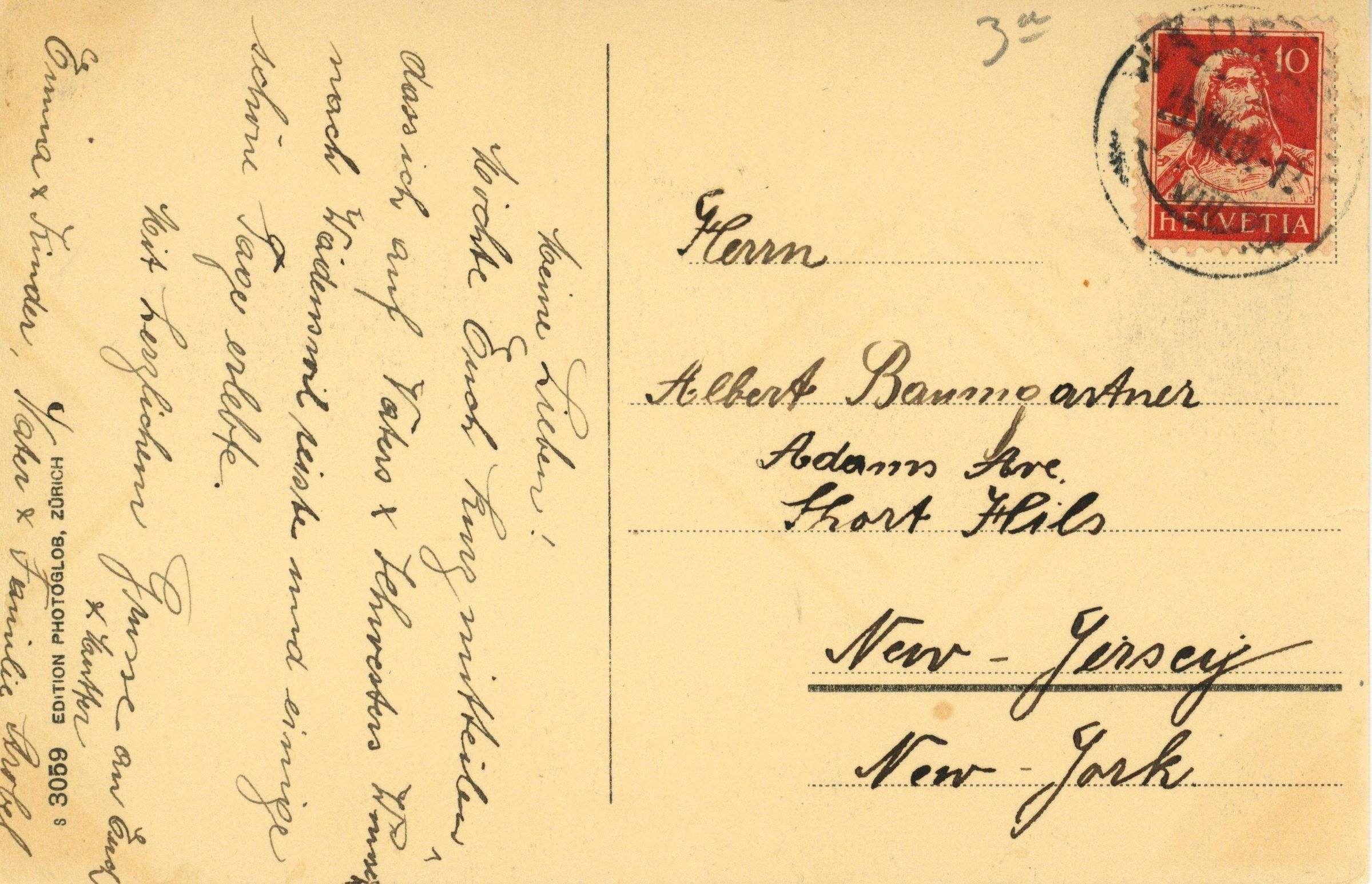 Baurmgartner: Postcard to Albert Baumgartner, 1912