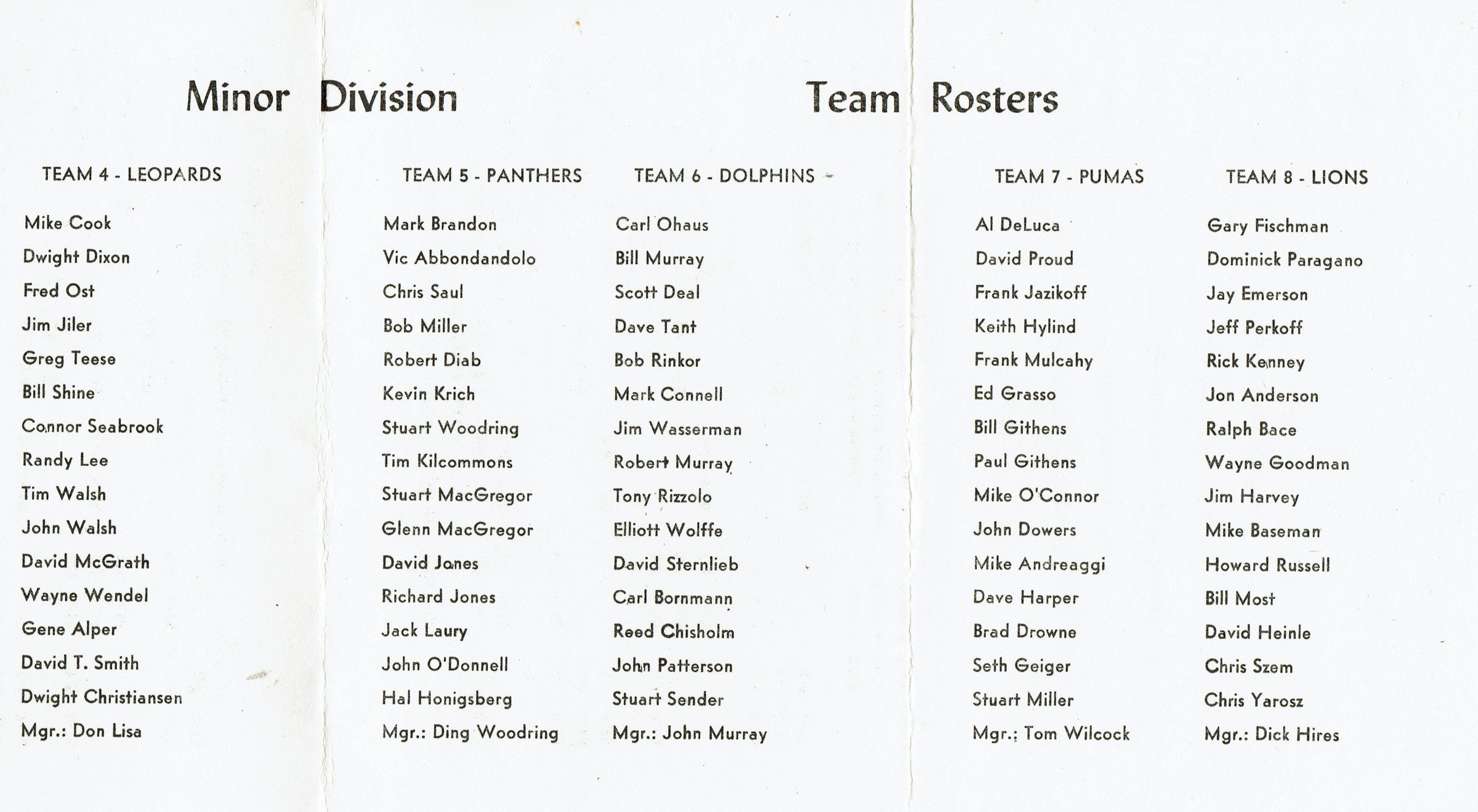 Millburn Department of Recreation Millburn-Short Hills Little League, Inc. American League League Minor Division Schedules, 1970. Contains Full Team Rosters.Acquisition