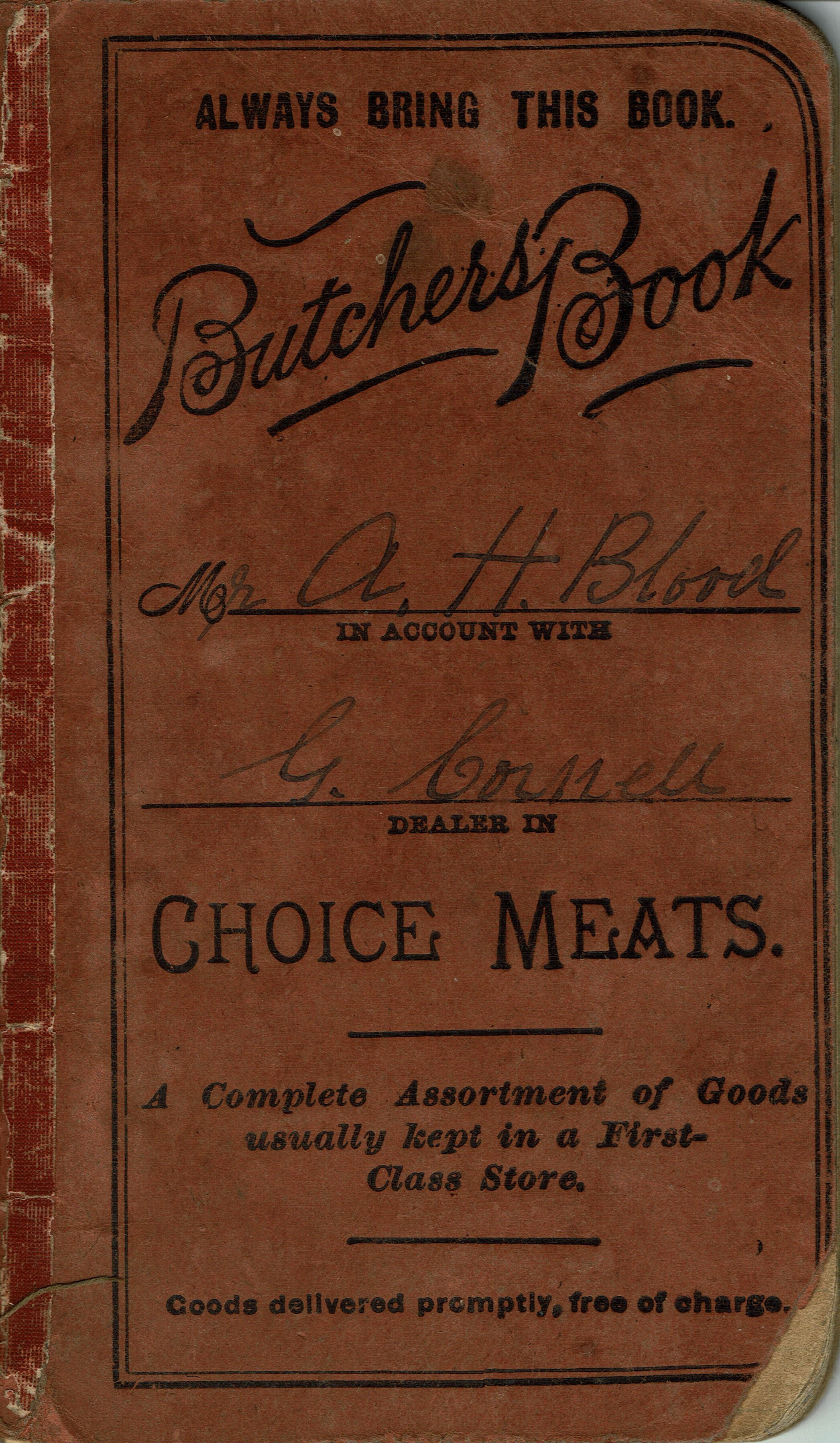 Blood Estate: Alfred Blood Account Book for Cornell's Meat Market, 1893-4