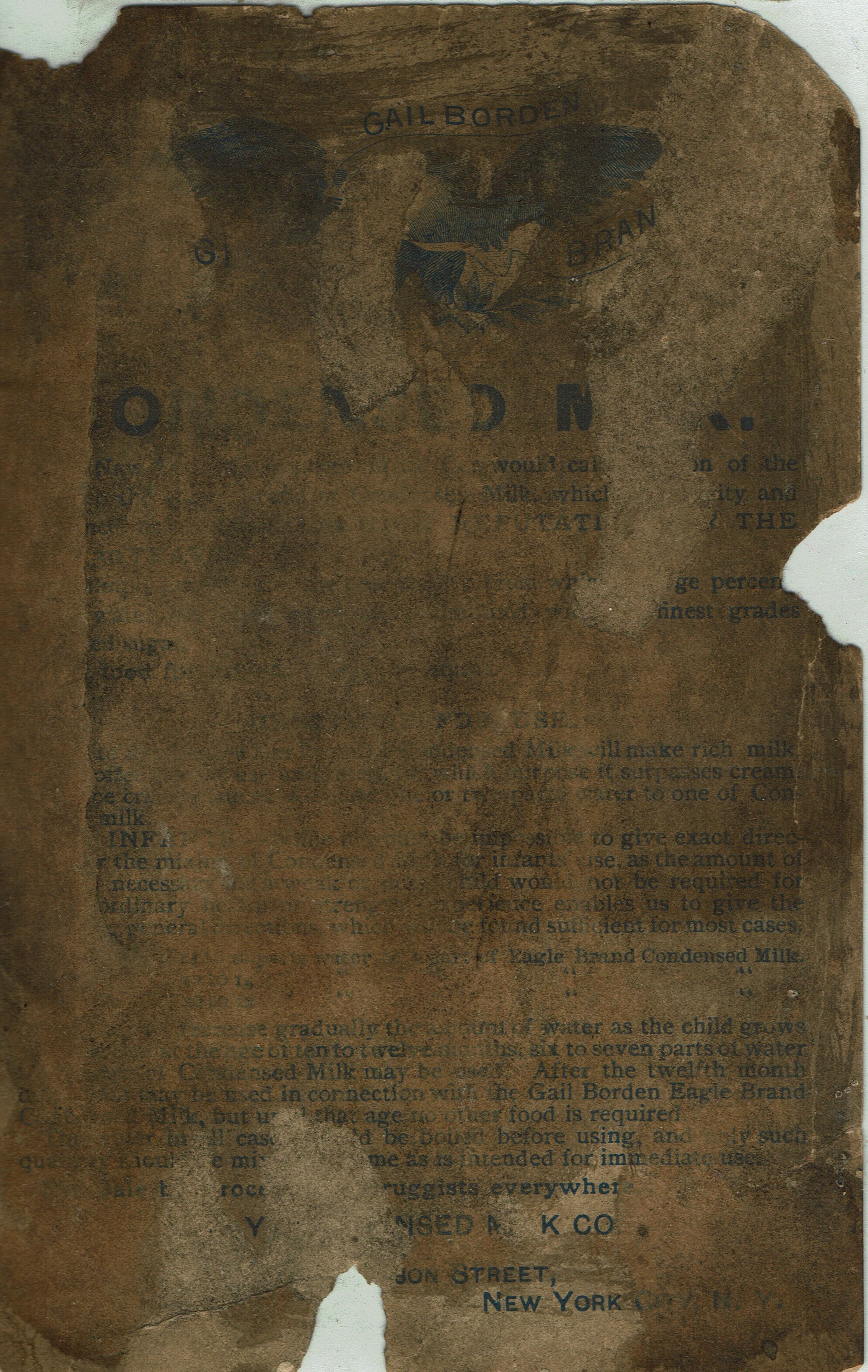 Blood Estate: Eagle Condensed Milk Advertising Card, c. 1890sEntry/Object ID