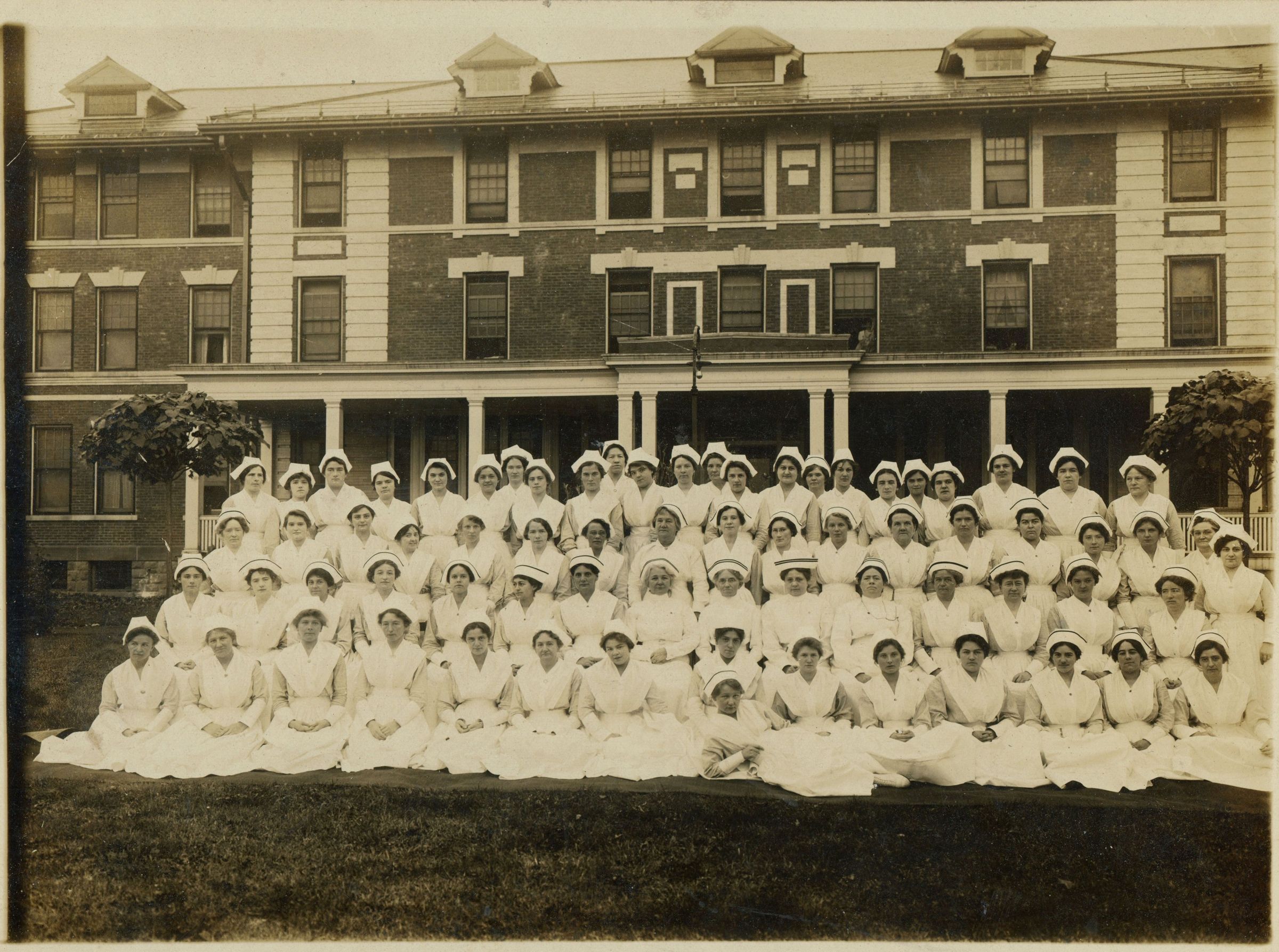 Photograph of the nursing staff at the Essex County Hospital taken November 11, 1915. Bessie Bosworth is standing in the last row, eighth from the left.Acquisition
