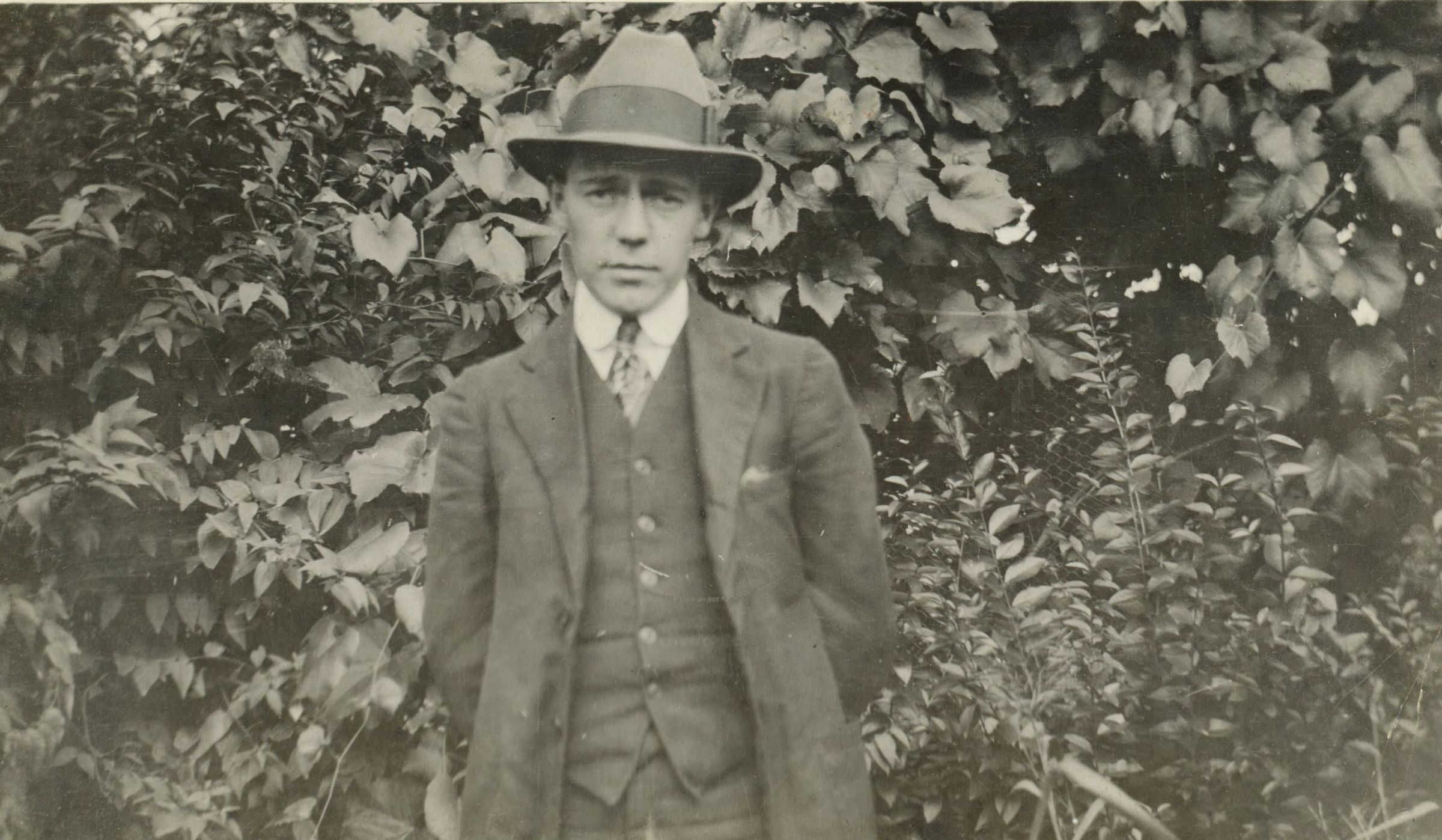 Photograph of Guy R. Bosworth standing outside. Guy R. Bosworth grew up at 45 Ocean Street, Millburn. In July 1912, he became certified as a Registered Pharmacy Assistant as of July 19, 1912. He enlisted in the army in 1917 and was "reported killed " in the sinking of the transport Antilles on October 17 of that year. He was the first solider in New Jersey to die in WWI.Acquisition