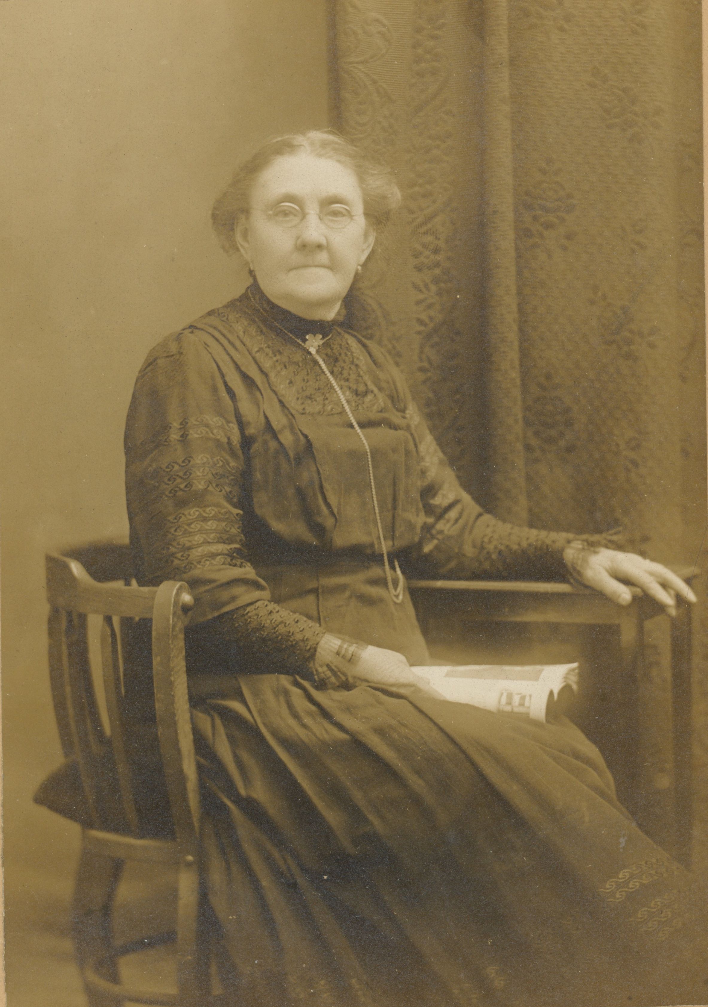 Photograph of unidentified elderly woman wearing glasses from the Sol Young Studio. The picture comes from the Bosworth collection of unidentified photographs. The woman may be William P. Mangold's mother, Caroline Mangold (1857-1919)