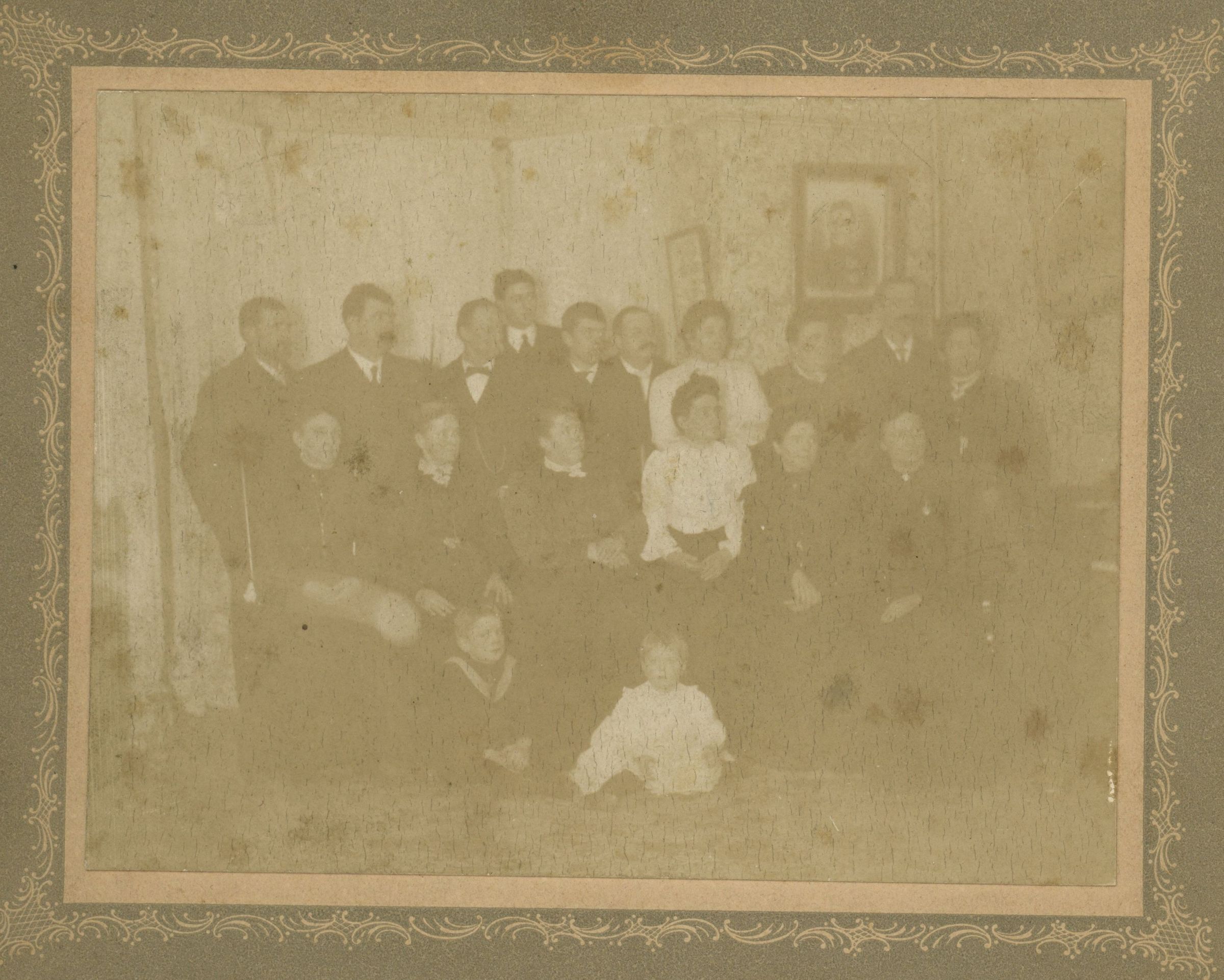 Photograph of 18 unidentified sitters, presumably a family portrait from the Bosworth photo collection. Note: Man in the center of the back row appears to be the same as in 2025.062.046 taken at Otseky studio.Collection