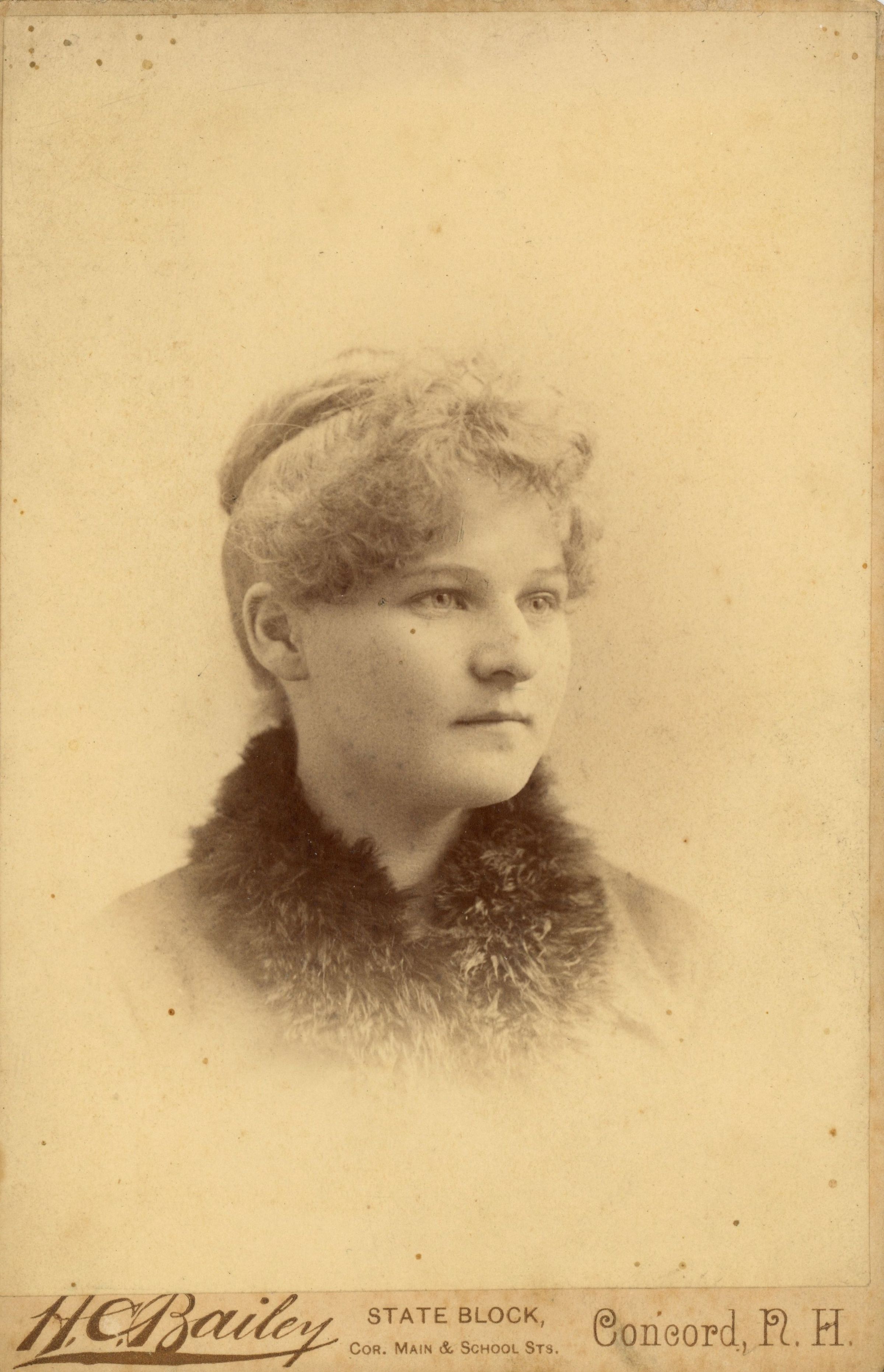 Bust-length photograph of an unidentified woman wearing fur collar taken at H.C. Bailey's photographic studio, State Block, corner of Main and School Streets, Concord N.H. The photograph comes from the Bosworth collection of unidentified photos.Photograph Details