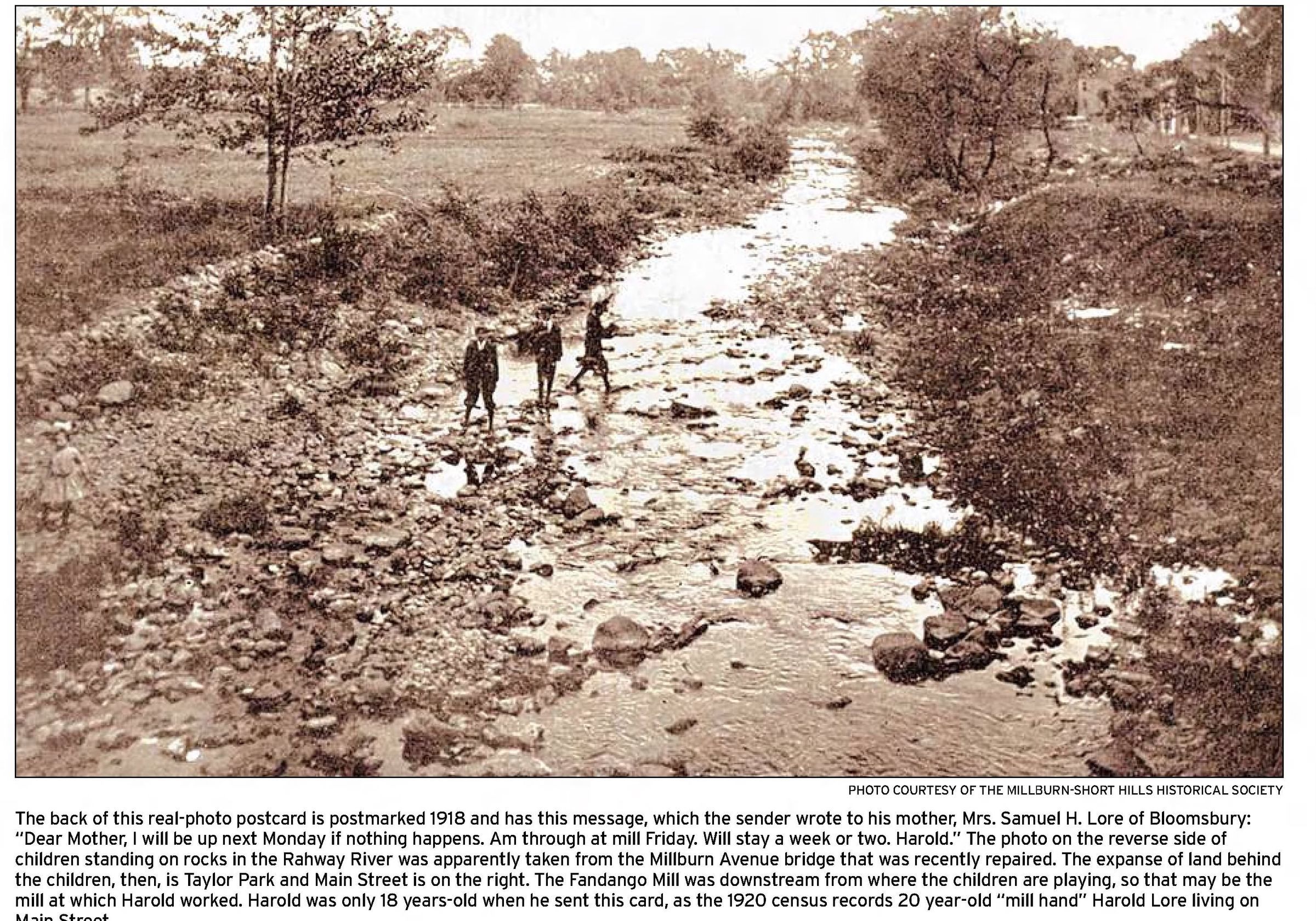 Postally used postcard, postmarked Millburn 1918 from Harold Lore to Mrs. Samuel H. Lore, Bloomsbury. Text reads: "Dear Mother, I will be up next Monday if nothing happens. Am through at mill Friday. Will stay a week or two. Harold."Collection