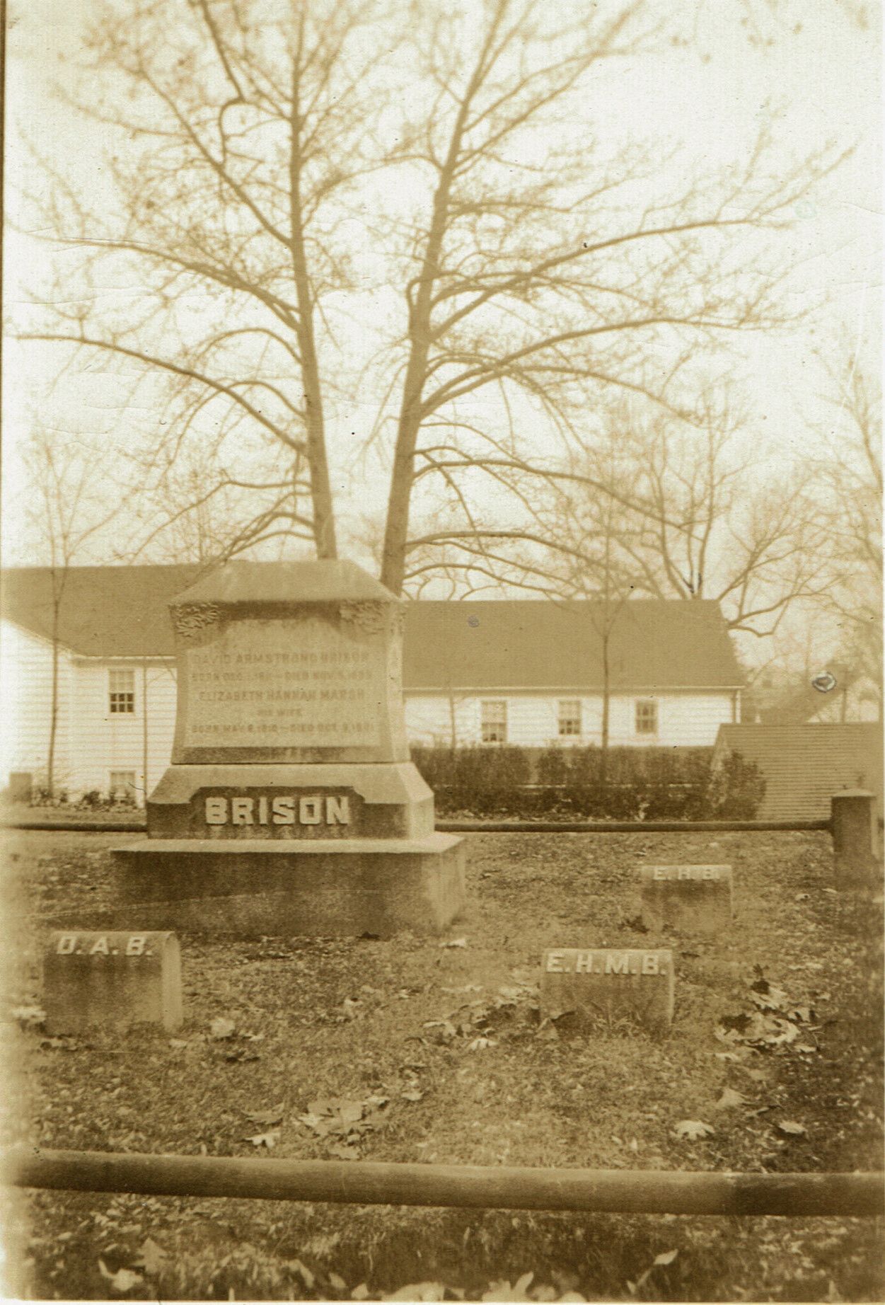 Brison Monument at St. Stephen's Cemetery, Millburn, NJ. Inscription on back of photo reads: The new Benson lot extension adjoining on the west, December 1933.Collection