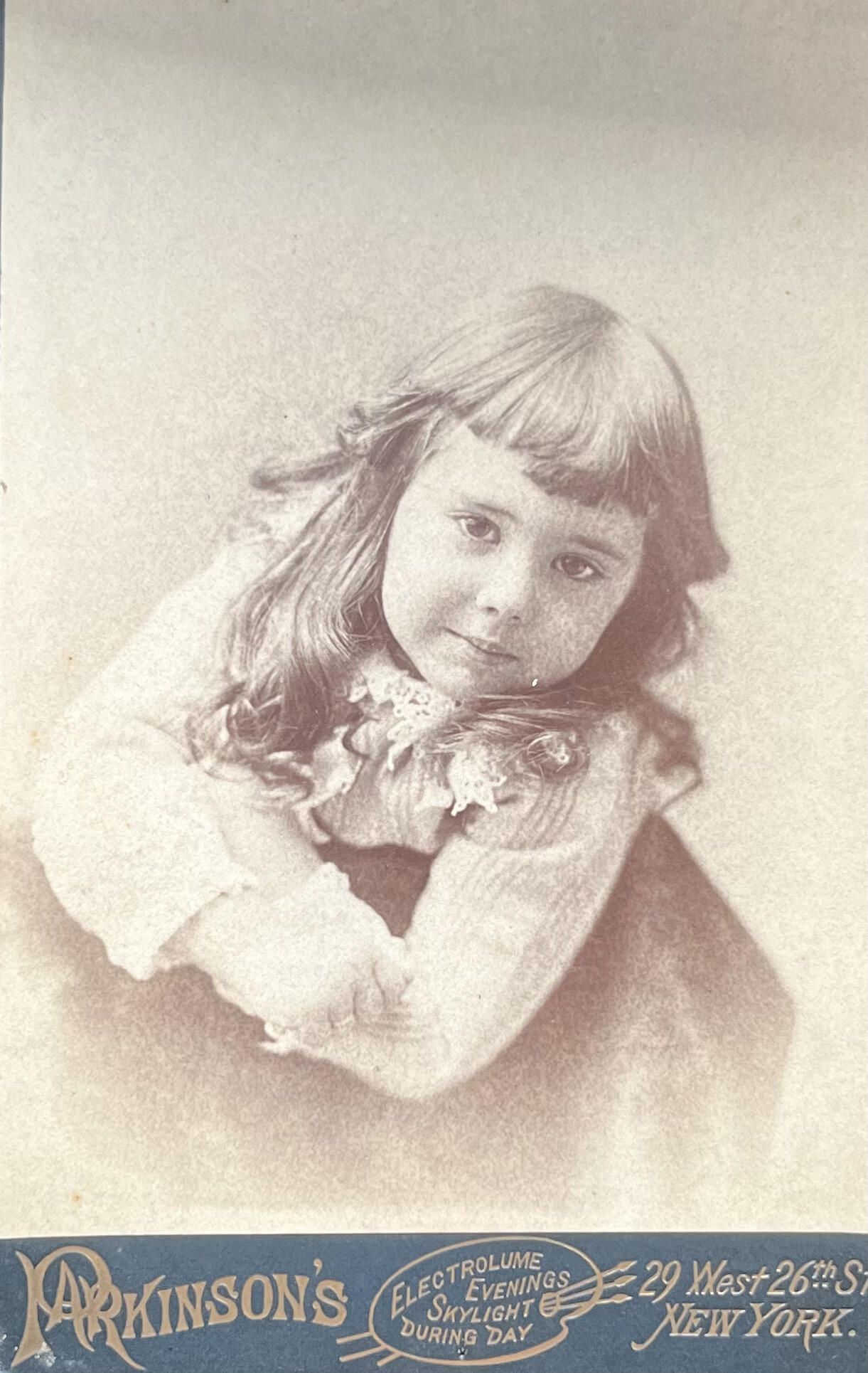 A photo of a child taken by Parkinson's (Electrolume Evenings Skylight During Day) on 29 West 26th St., NY. Inscribed on the back is E. Brison and Tom WalshPhotograph Details