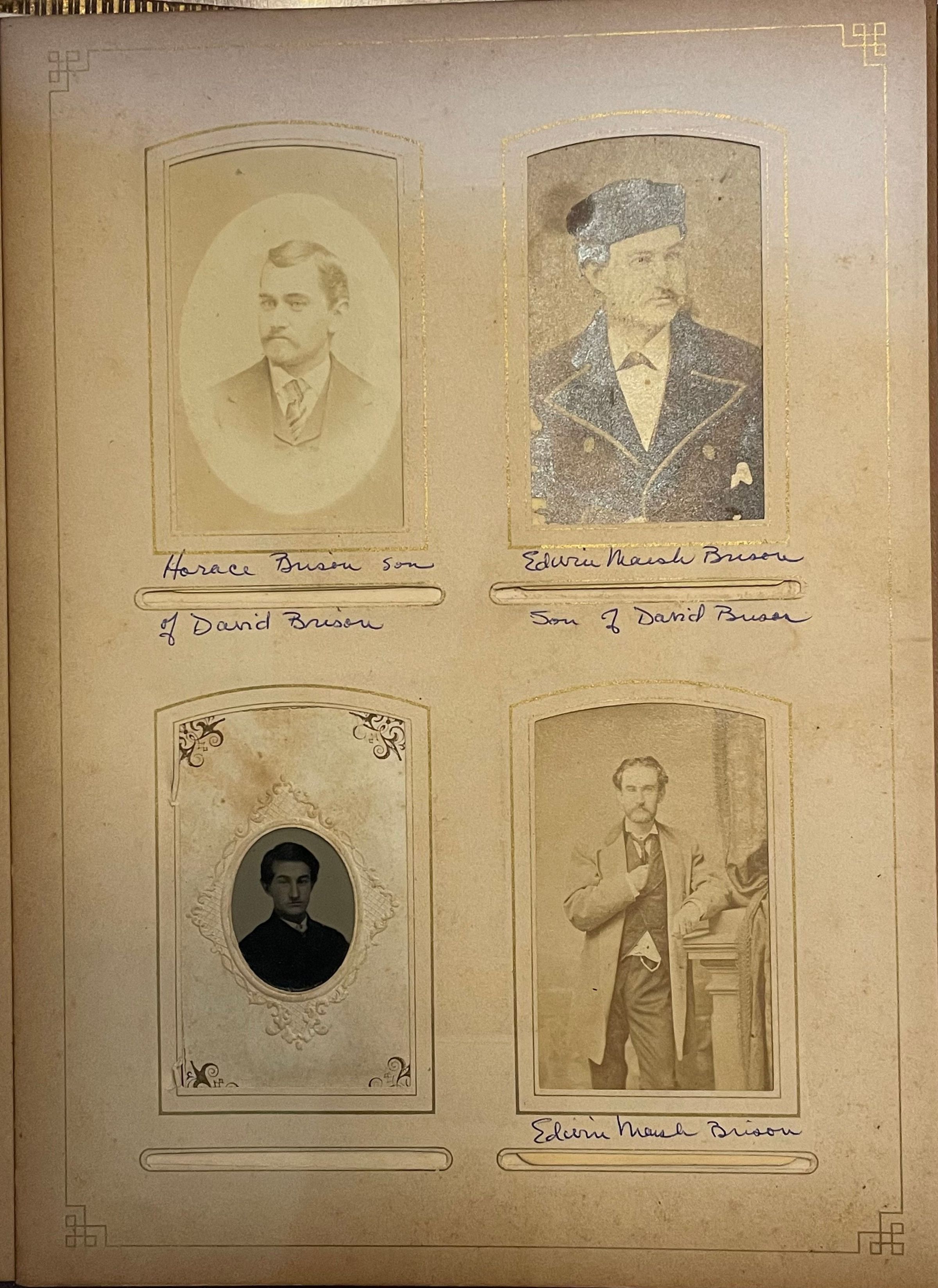 Page 12 from the Brison photographic album containing carte de visites of Horace Brison (May 5, 1848-April 16, 1910) and Edwin Marsh Brison (December 26, 1845-May 31, 1928), sons of David Armstrong Brison.Photograph Details