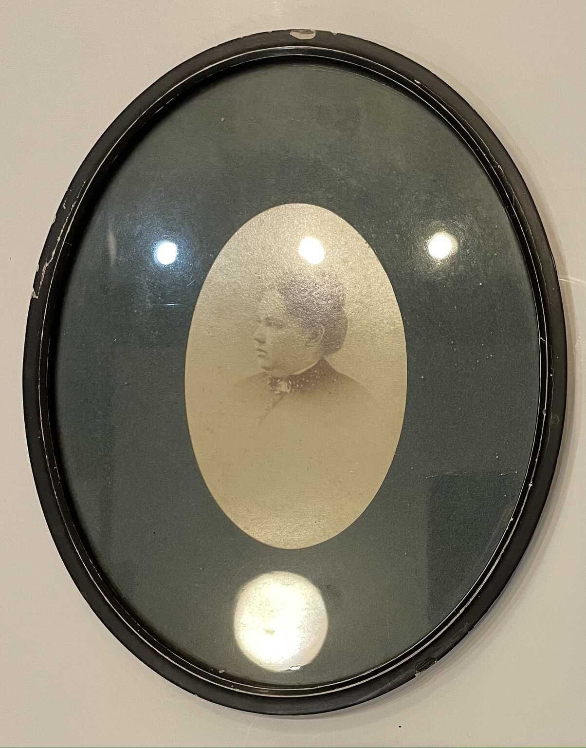 Photograph of Mary Elizabeth Benson Ives, wife of James F. Ives, and sister of Emelie Benson Welsh. Photograph mounted in oval frame.Collection