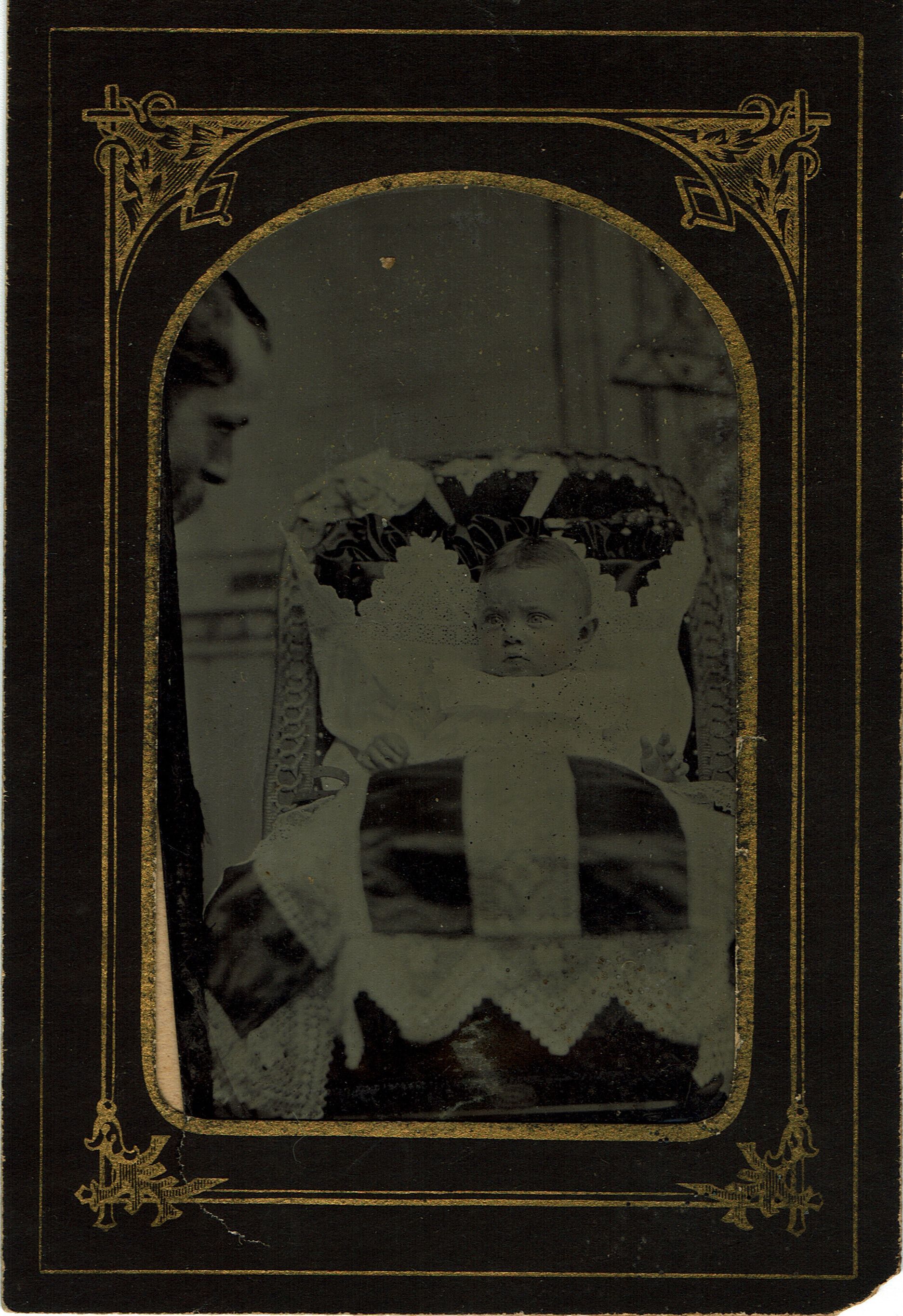 Tintype of Mary Harris Ives as an infant with her father James F. Ives. Undated.Photograph Details