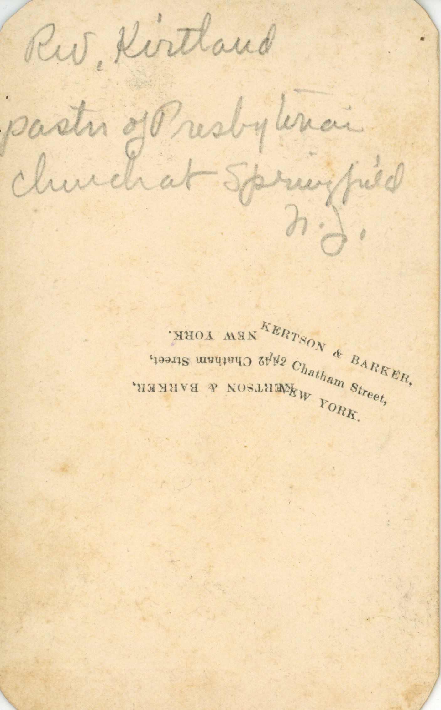 Reverend Kirtland served as pastor of the First Presbyterian Church in Springfield, NJ (1853-1872)Photograph Details