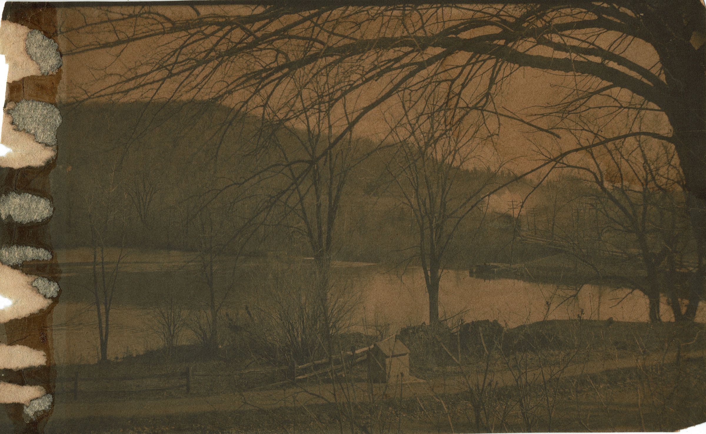 Photograph from the Brison Estate showing the pond and railroad tracks.Collection