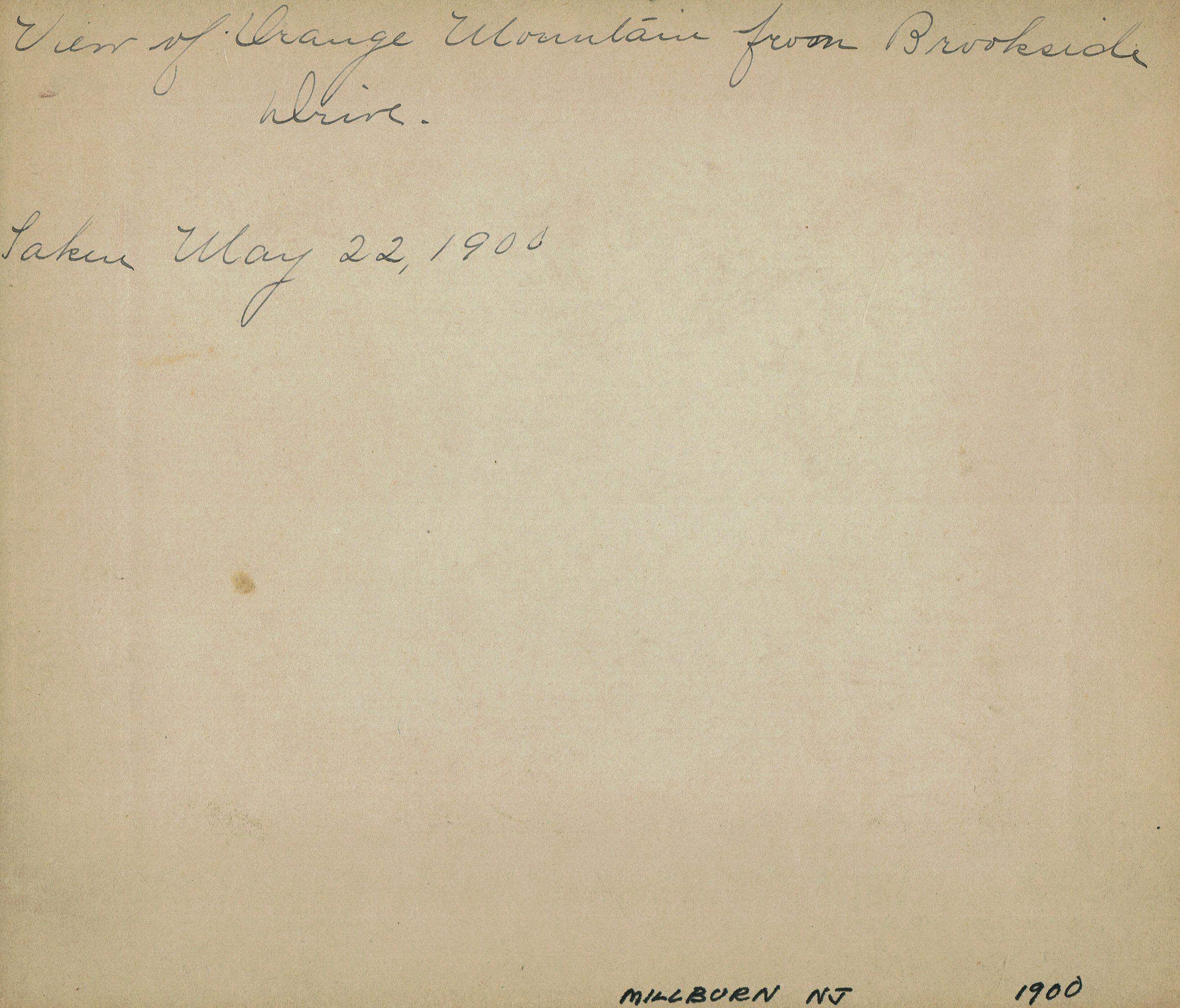 Labeled and dated photograph of Orange Mountain from Brookside Drive, Millburn, taken May 22, 1900Dimensions