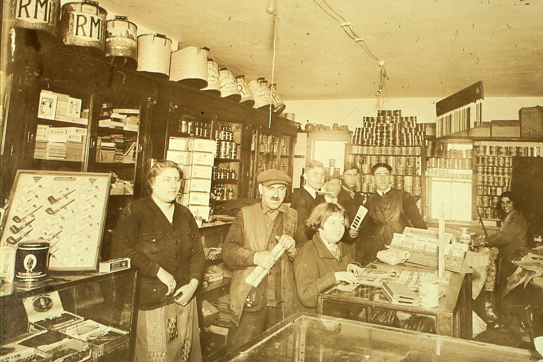 Buncher's Hardware Store: Interior with Bessie, Harry and others, 1925-6Entry/Object ID