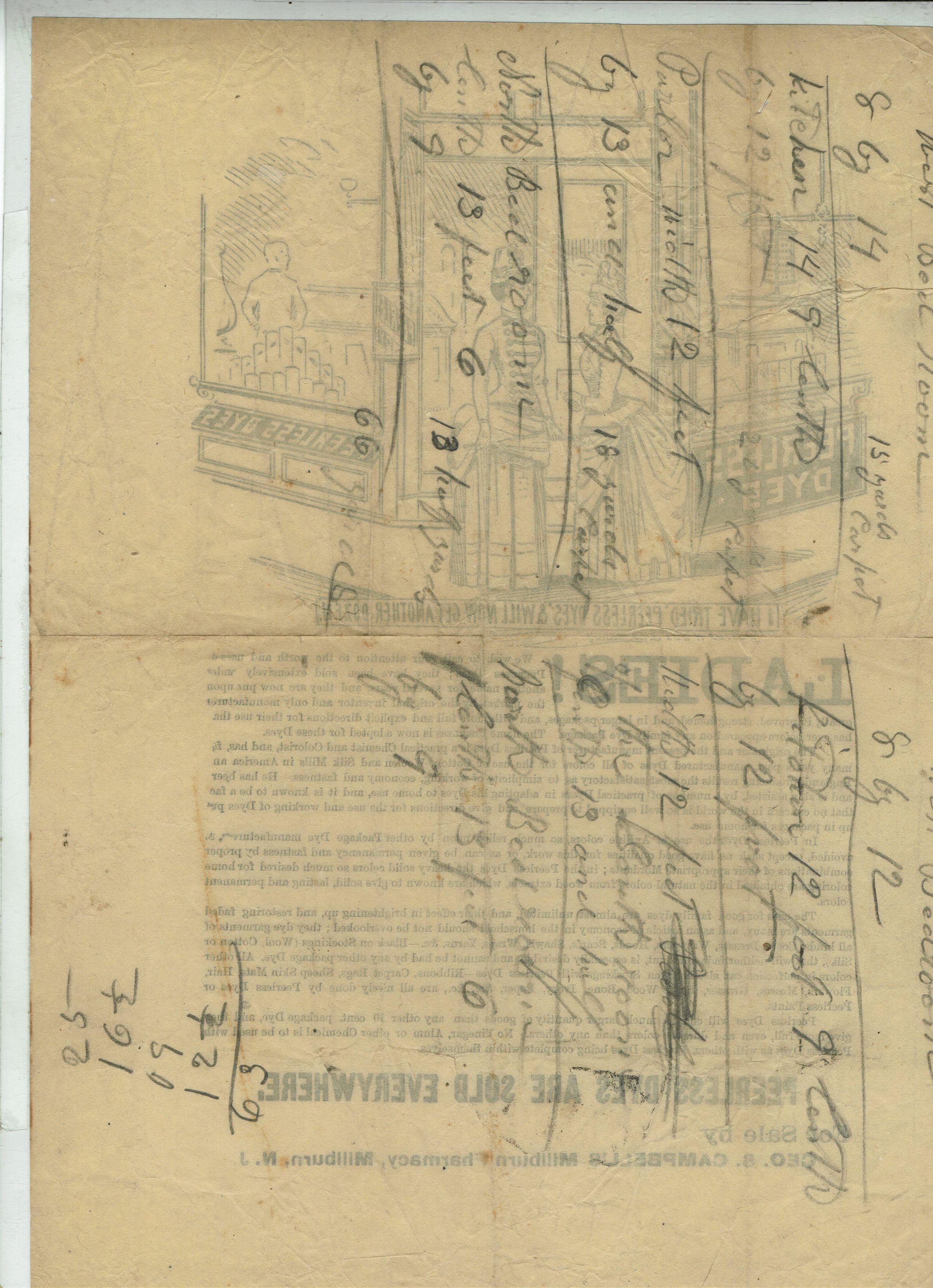 Advertisement for Peerless Dyes at George S. Campbell's Millburn Pharmacy, Millburn, NJ from c. 1890s.Acquisition