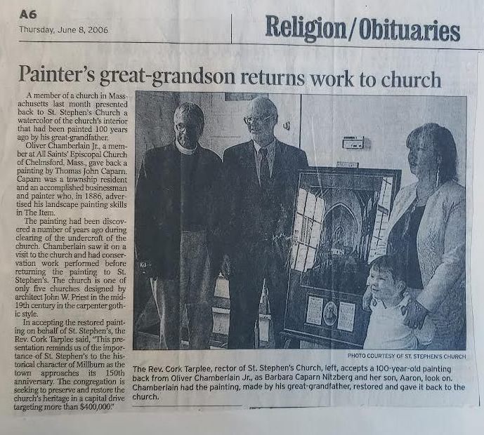 Article on Oliver Chamberlain Jr. returning his great-grandfather's painting to St. Stephen's Church.Acquisition