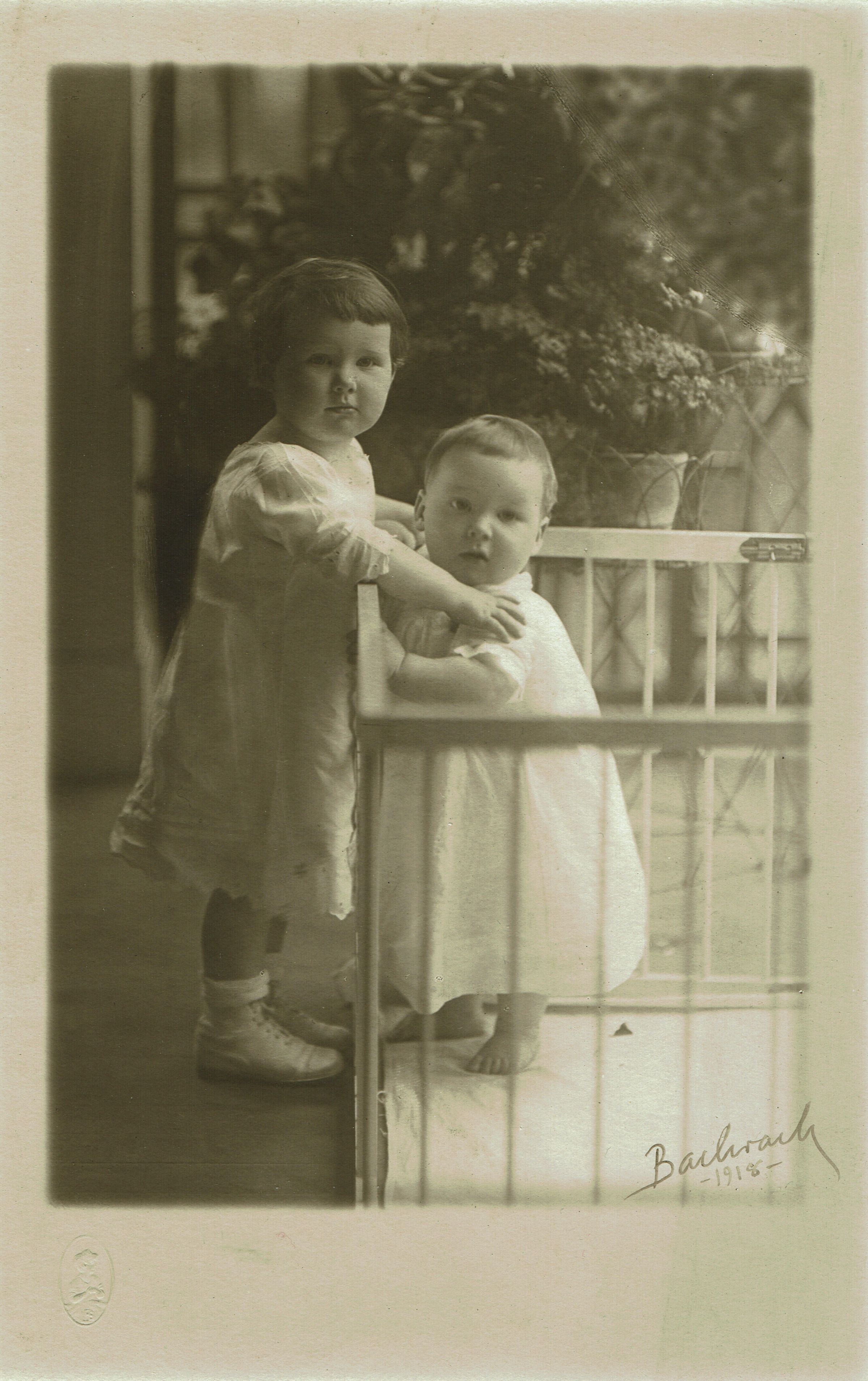 Photograph from the Hartshorn Family Collection. Description on the back identifies the children as Catherine and Stewart. Photograph by Bachrach studios, 1918. Catherine Jennette Hartshorn (7/23/16-10/26/1989) and Stewart Hartshorn III (8/17/1917- 10/2/1975)Acquisition