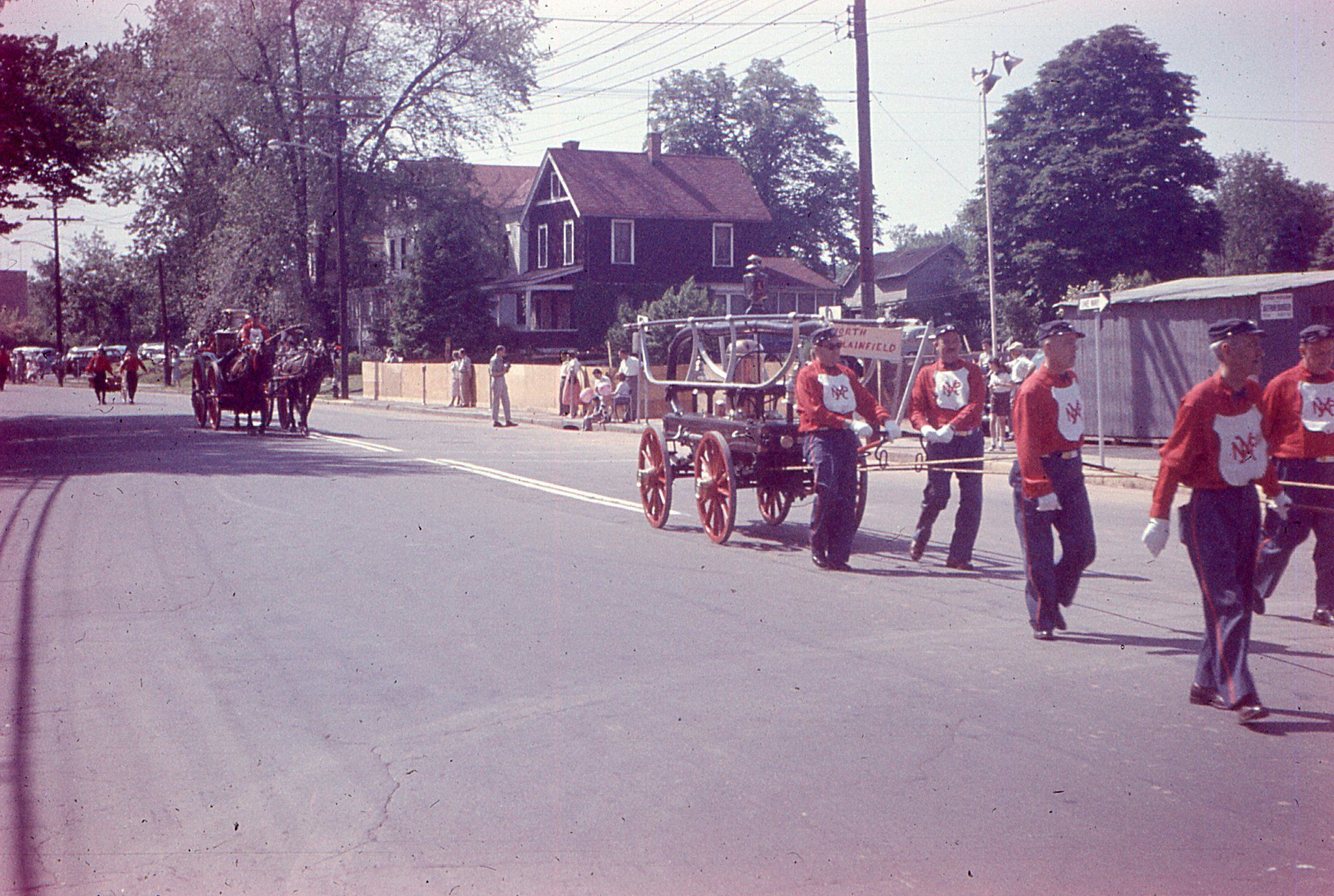 Photographs of antique fire equipment in the 1957 Millburn Centennial Parade.Photograph Details