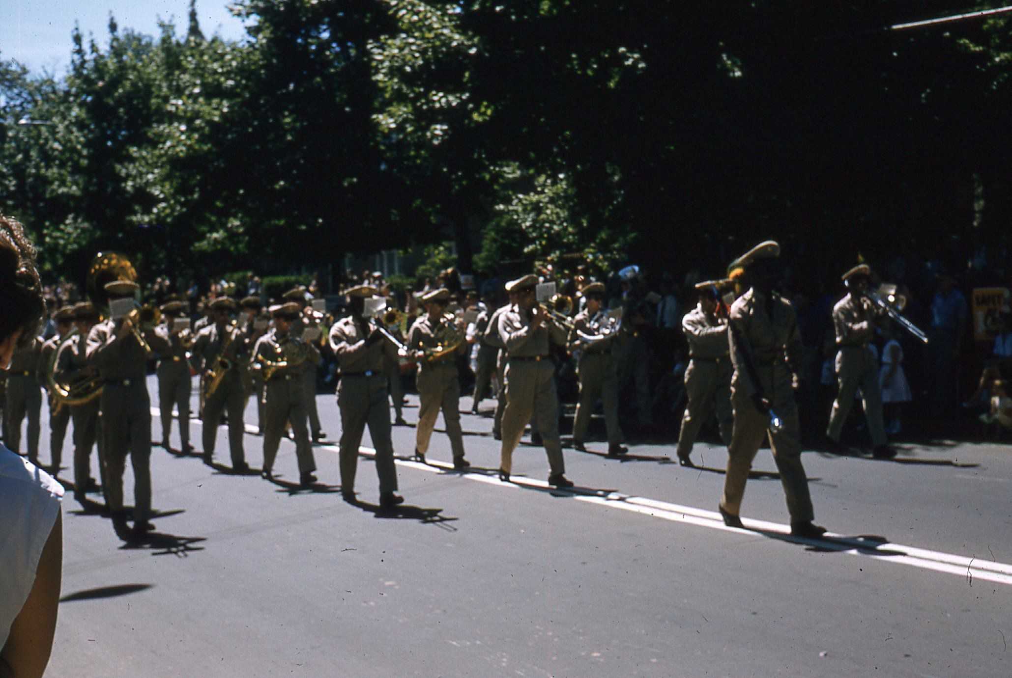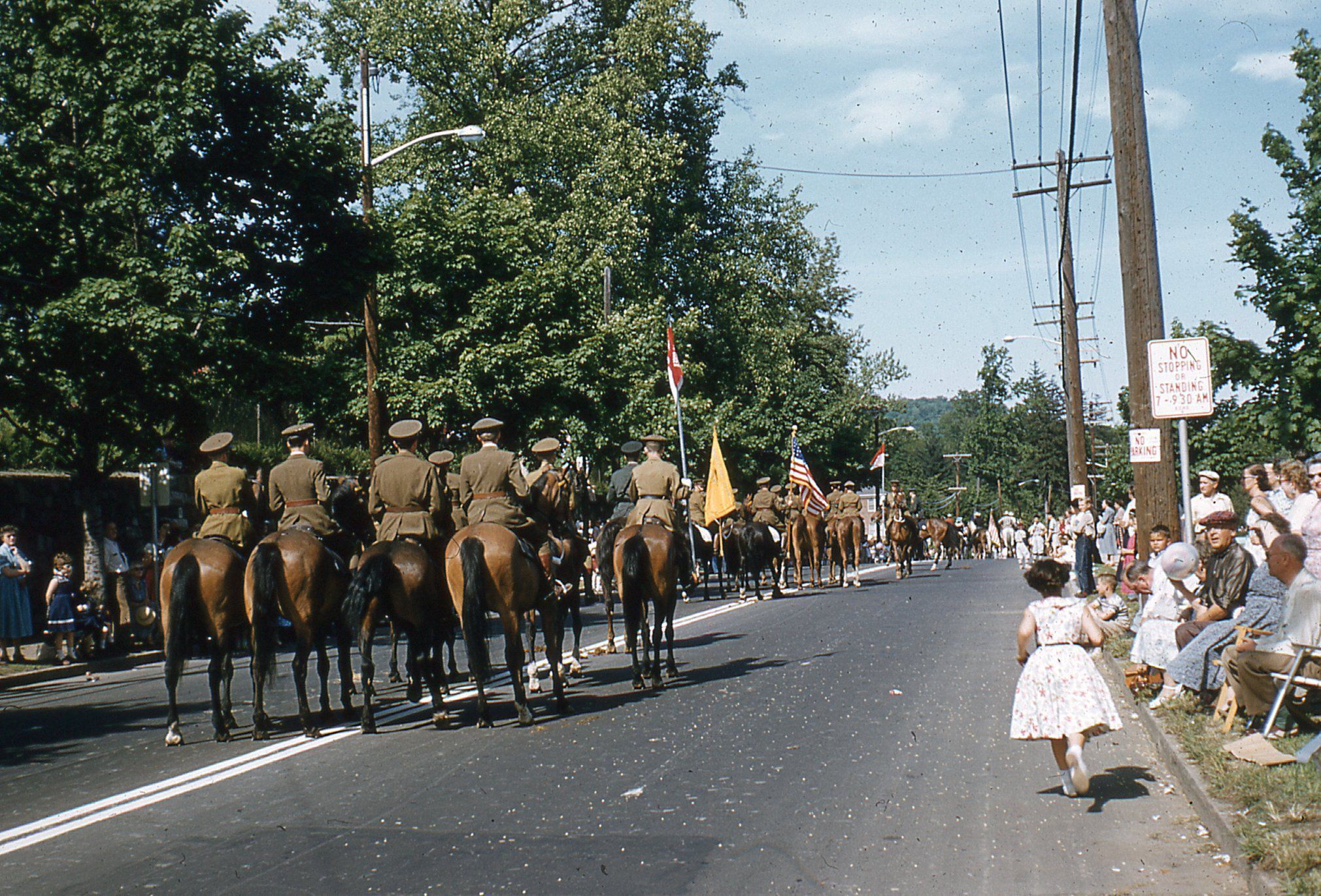 Photographs of military and local civic groups on Millburn Avenue in the Millburn Centennial Parade, May 25, 1957.Photograph Details