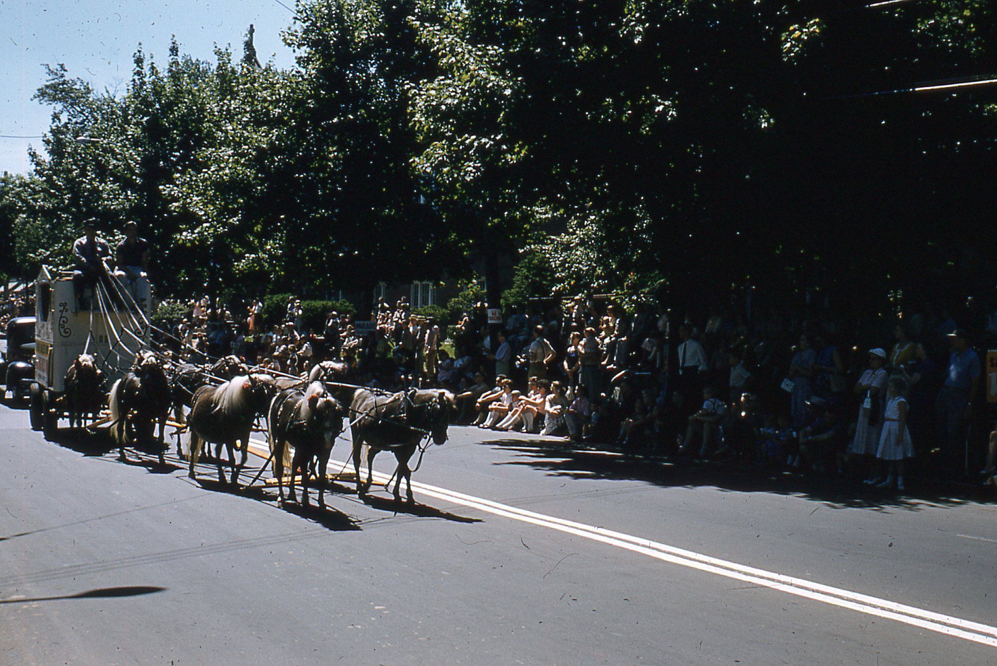Photograph of the Radio Sales Corp.'s Calliope and Eight Ponies, which was the first in line in the Curtain Raiser Division of the Millburn Centennial Parade on May 25, 1957.Photograph Details