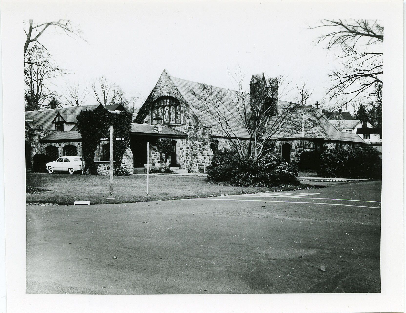 This picture was taken on the eve of enormous growth in the church and before a series of expansions to the building. Dating is quite accurate as the new street sign for Highland Avenue and Forest Avenue id in place. Prior to 1948, Short Hills was devoid of street signs, but their installation was forced by the US Post Office before home delivery of mail could be instituted. On the church, the enlarging of the sanctuary and the addition of the chapel had not yet taken place.Collection