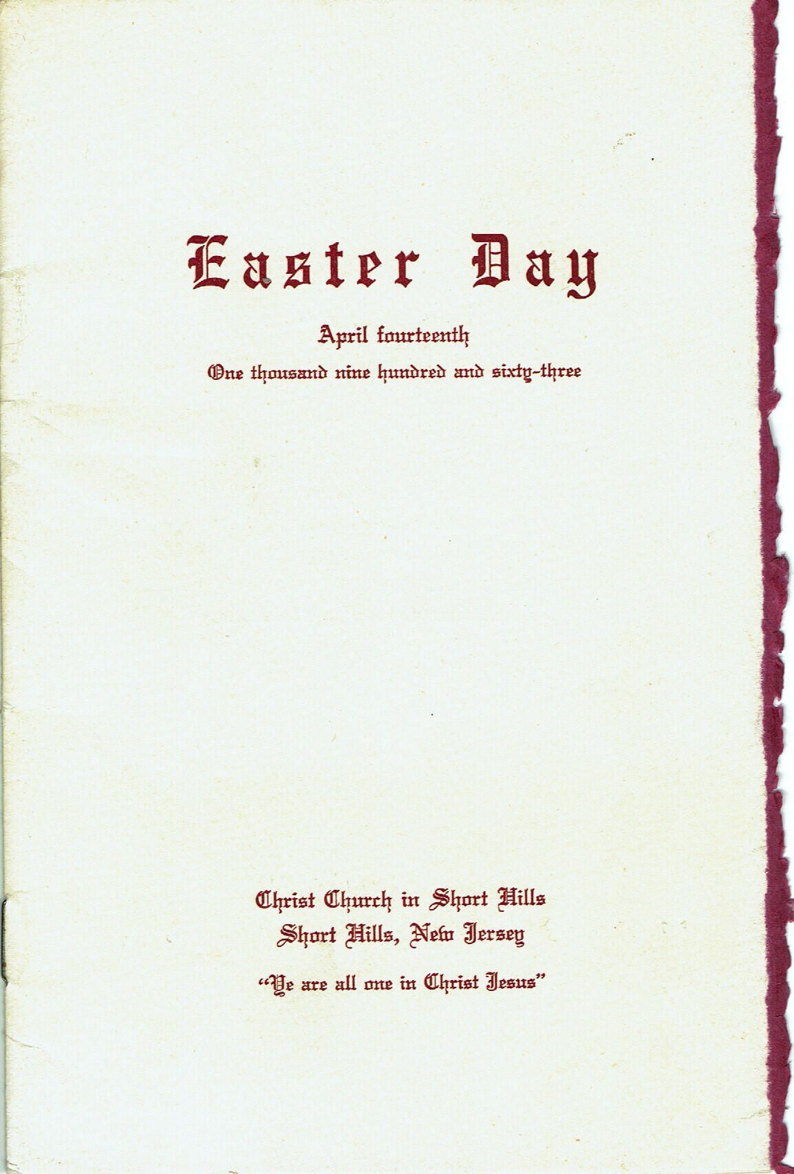 Program for Easter Services at Christ Church, April 14, 1963. 16 pp.Acquisition