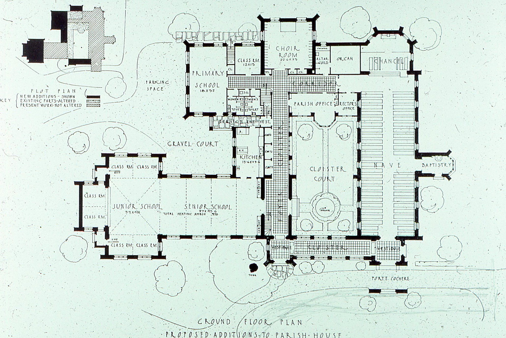 Plans for the Additions to Christ Church in 1935. Image taken from Christ Church Archives by Owen Lampe in 1981.Collection