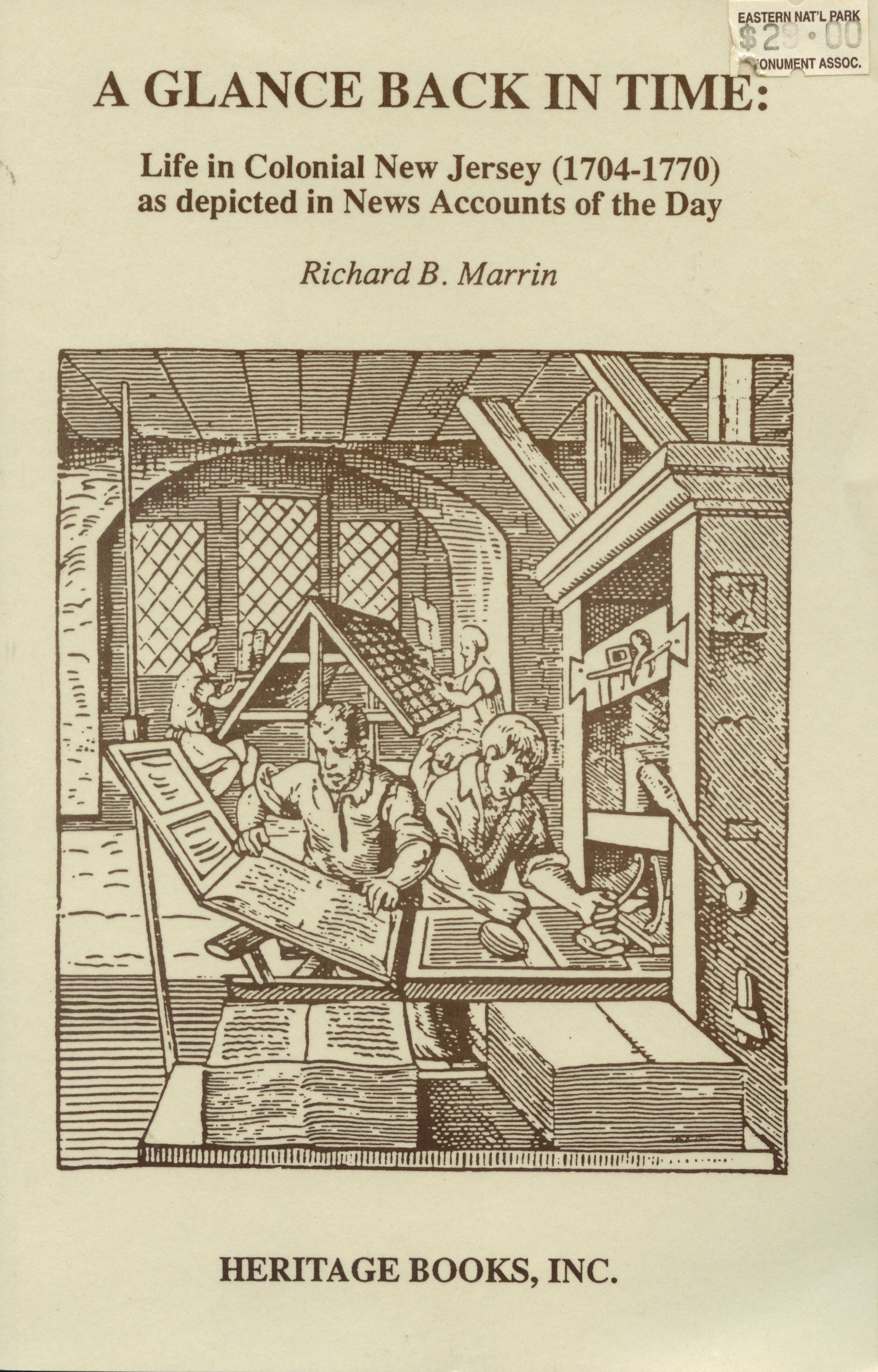 Marrin, Richard B. A Glance Back in Time: Life in Colonial New Jersey (1704-1770) as depicted in News Accounts of the Day. Maryland: Heritage Books, Inc., 1994. Softcover, 359 pp.Acquisition