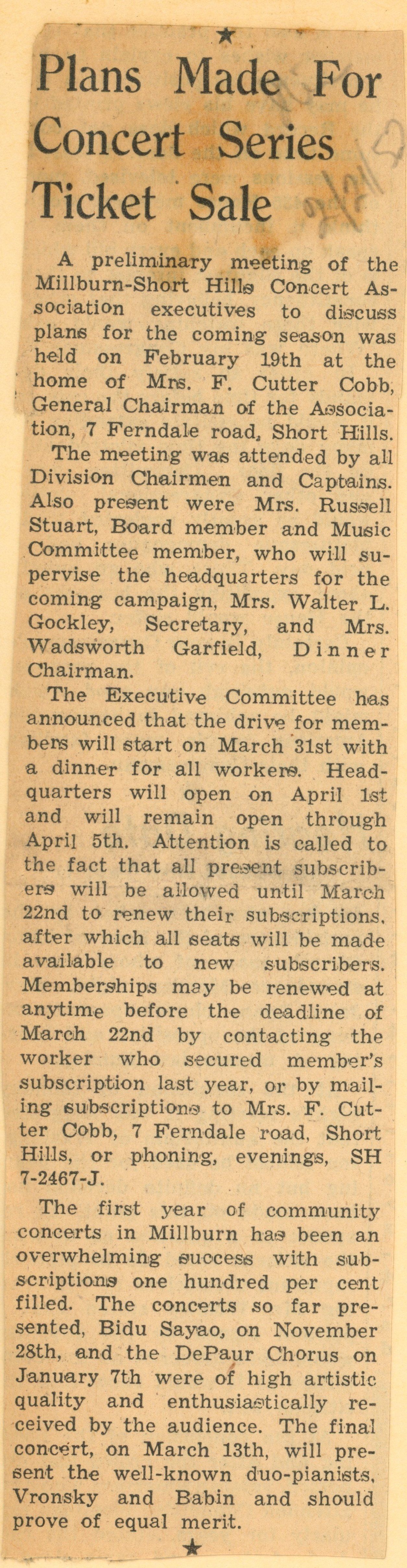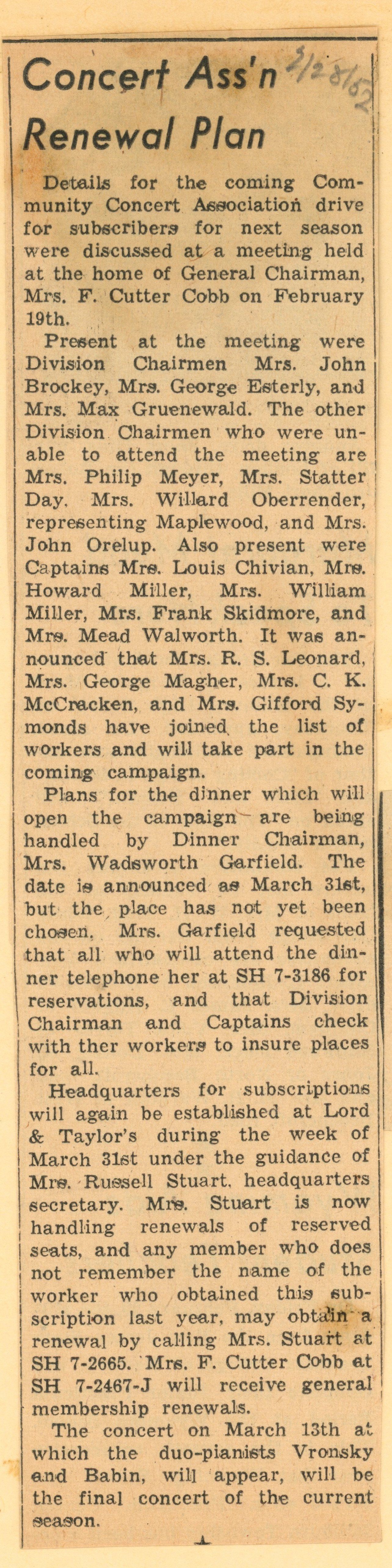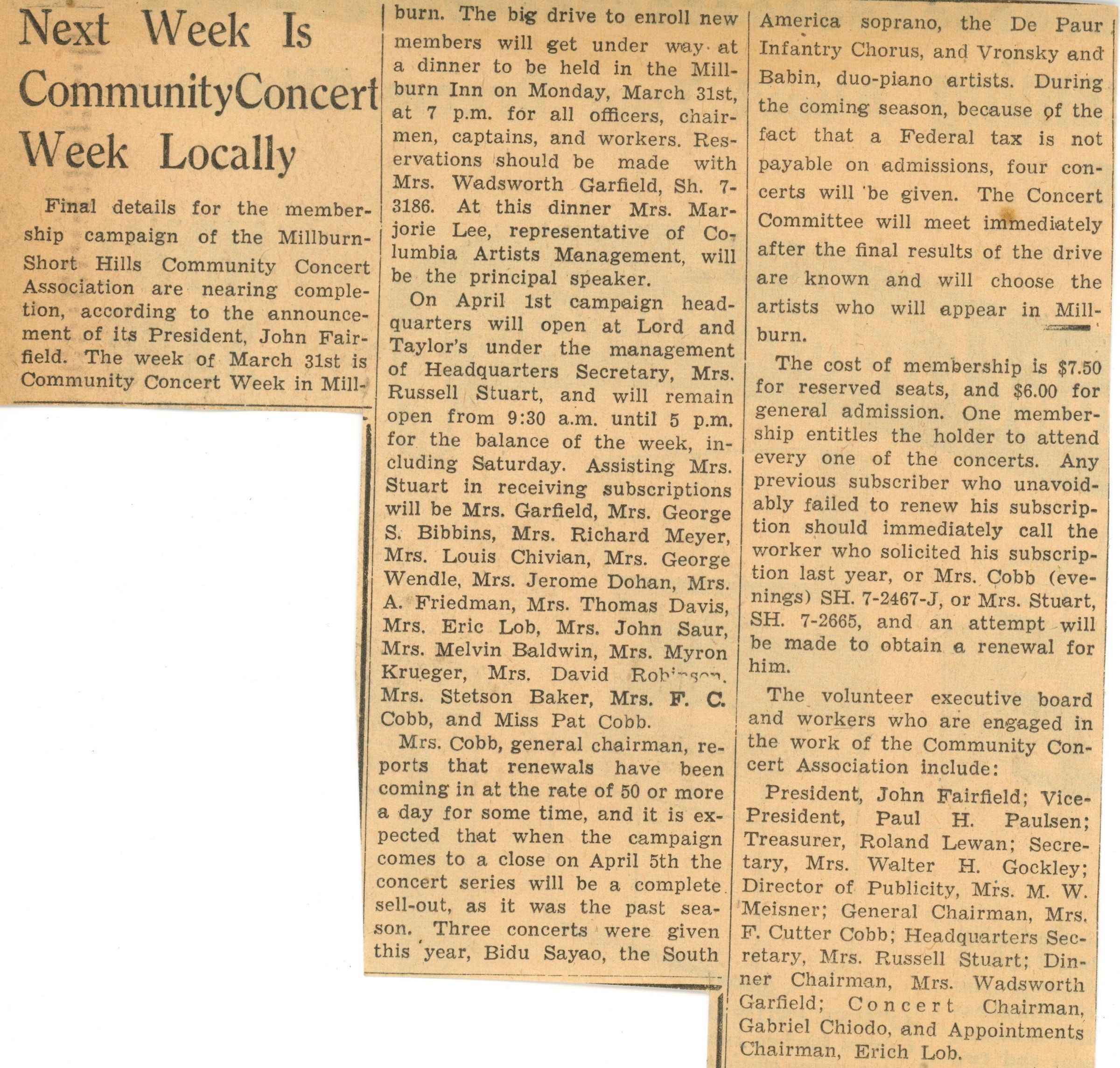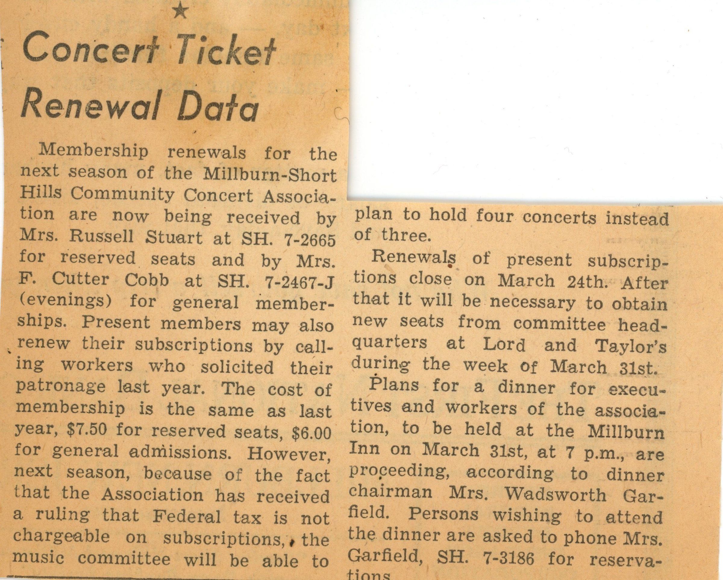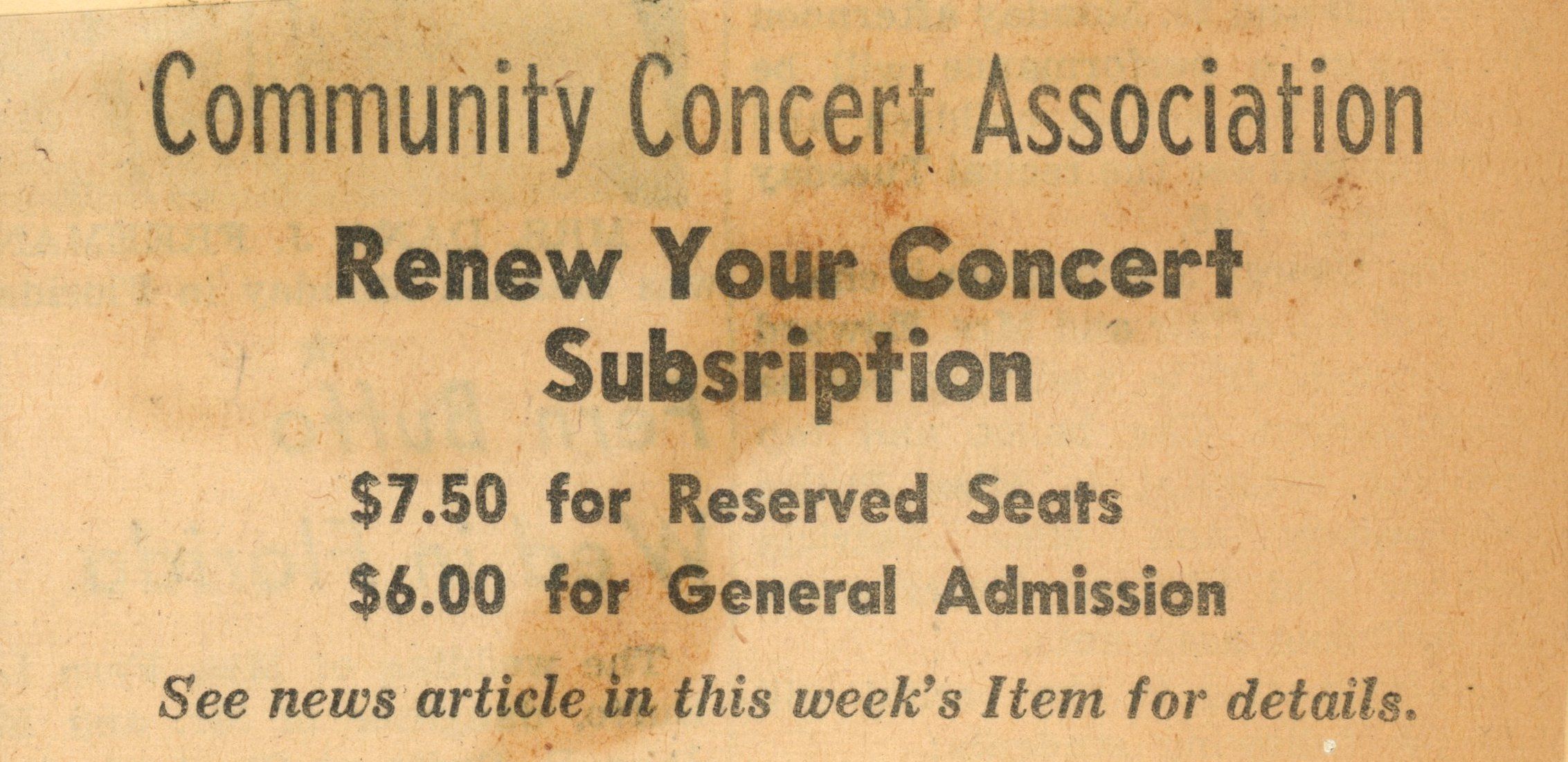 Community Concert Association: Concert Series Plans for Second Season, 1952