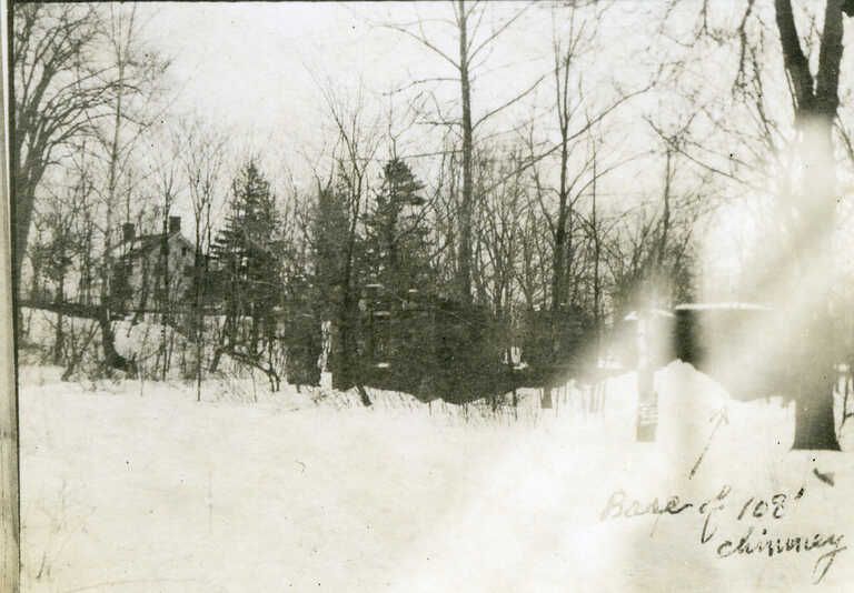 Photographs of Francis R. Condit's home, located on what is now part of Taylor Park. The first photograph was taken from Main Street and shows the front and right side from the south. The second photograph was taken from St. STephen's Rectory, directly across Main Street ans shows the base of the 108 foot chimney from the ruins of the old mill.Collection