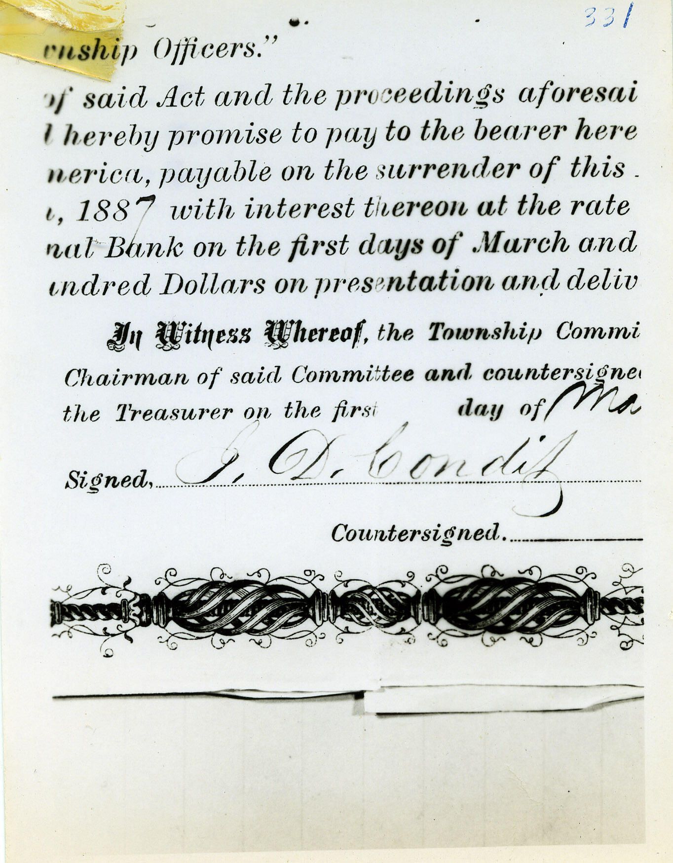 Condit: Israel.D. Condit Signature on Bond, 1887