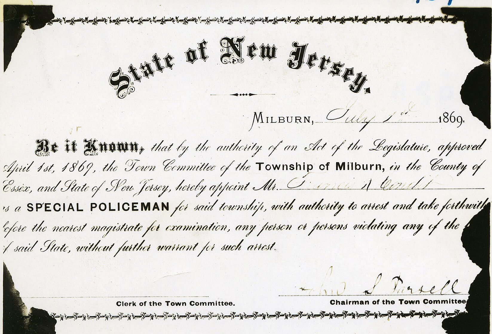 Condit: Special Policeman Certificate Francis Condit, 1869